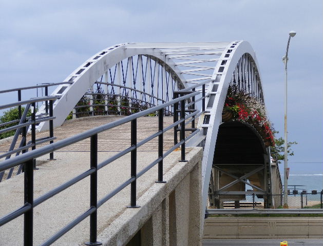 We crossed Lake Shore Drive to North Avenue Beach on the pedestrian bridge.