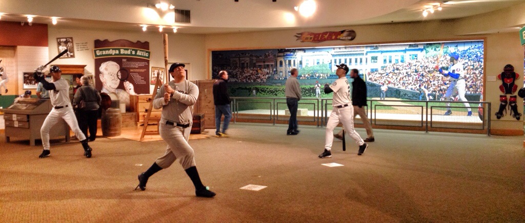 One end of the room was filled with a display that demonstrated how fast a 90 mph fastball travels. It was almost too fast for my eye to pick it up and showed me just how wise I was to stick to church-league softball. I couldn’t help but notice that it was a Chicago Cub who was perpetually striking out.