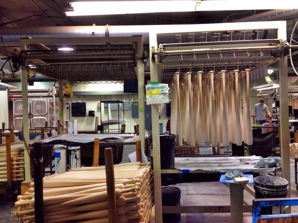 The tour took 30 minutes. We saw the automated lathes where bats are made for the minor leagues and for sale in stores. The machine that makes Major League bats is computer programmed to meet the specifications of every player. We weren’t allowed to take photos on the tour, but there were windows all around the factory, so I was able to get some shots later from outside.