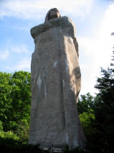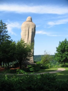 The Indian statue is 50-feet tall and hollow. It was created by some guy named Lorado Taft who was a member of an artist colony on this site. Although it’s often called Black Hawk, it isn’t supposed to represent any particular Indian. It’s just that Taft liked Indians, and he liked to stand on the bluff above the river with his arms folded. The rest is history. The park brochure says it is “thought to be the second largest concrete monolithic statue in the world.” I know I think so.