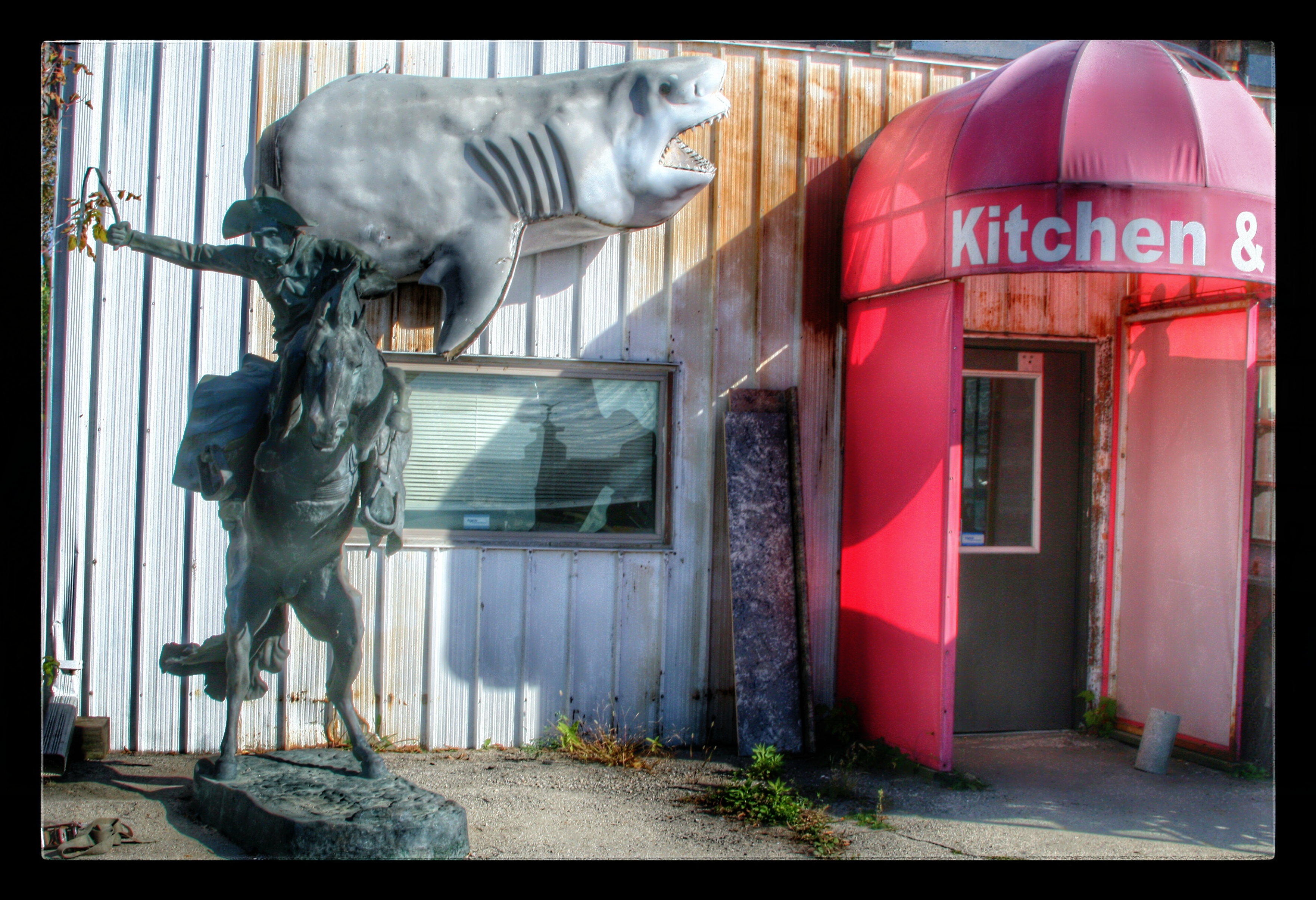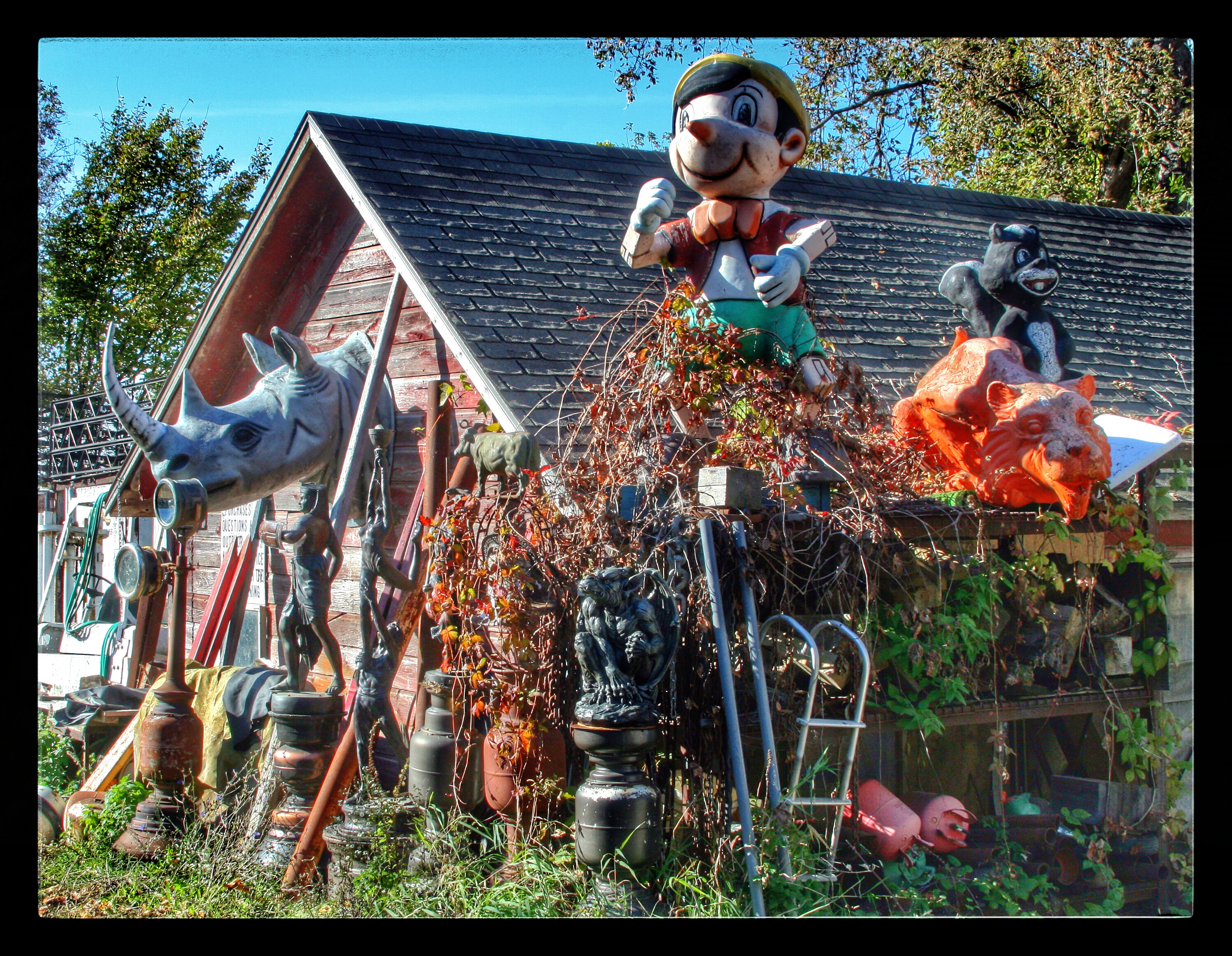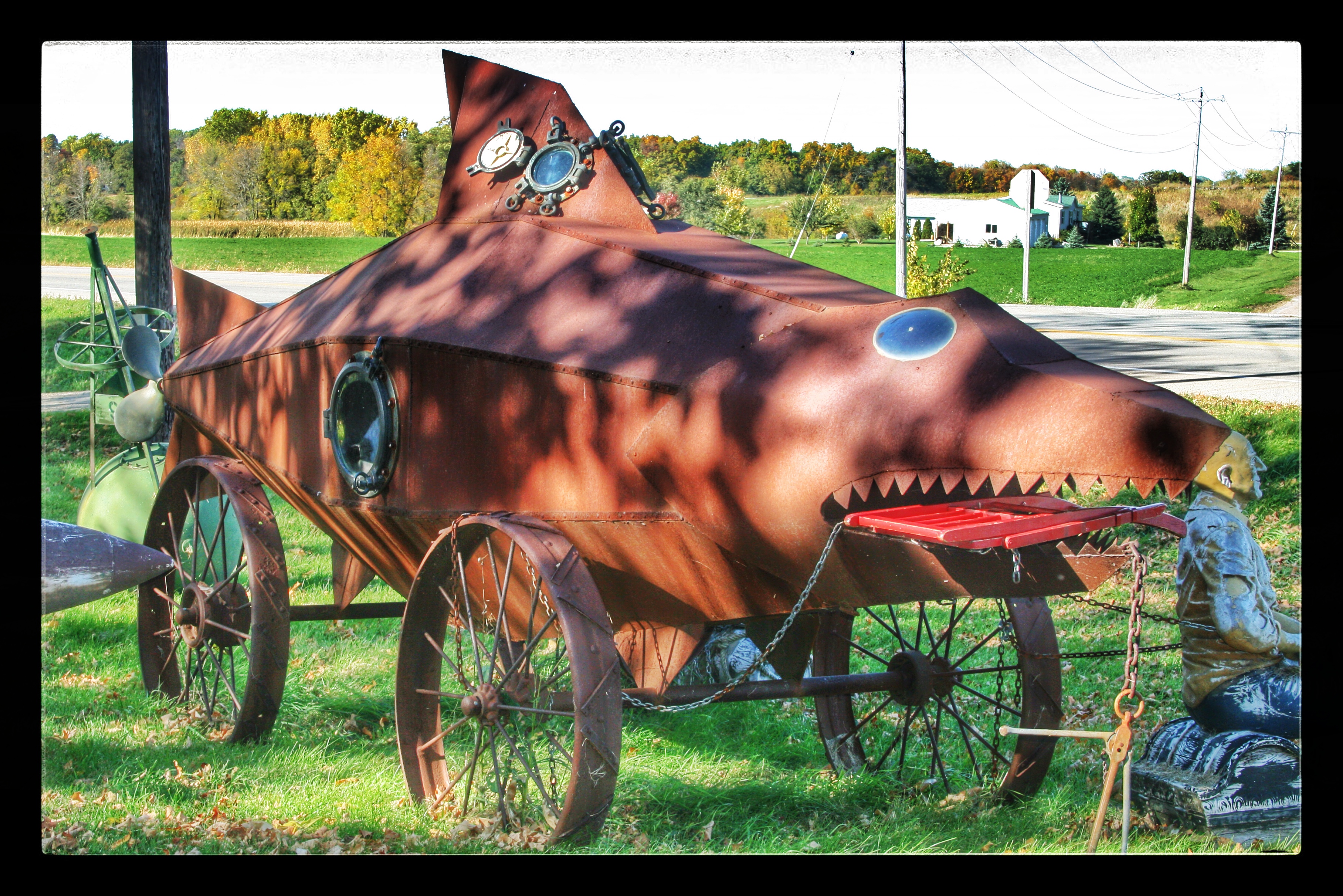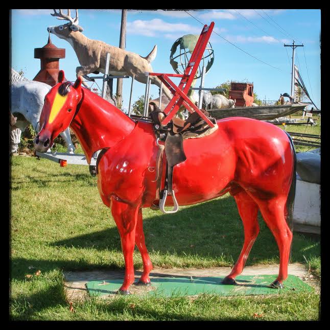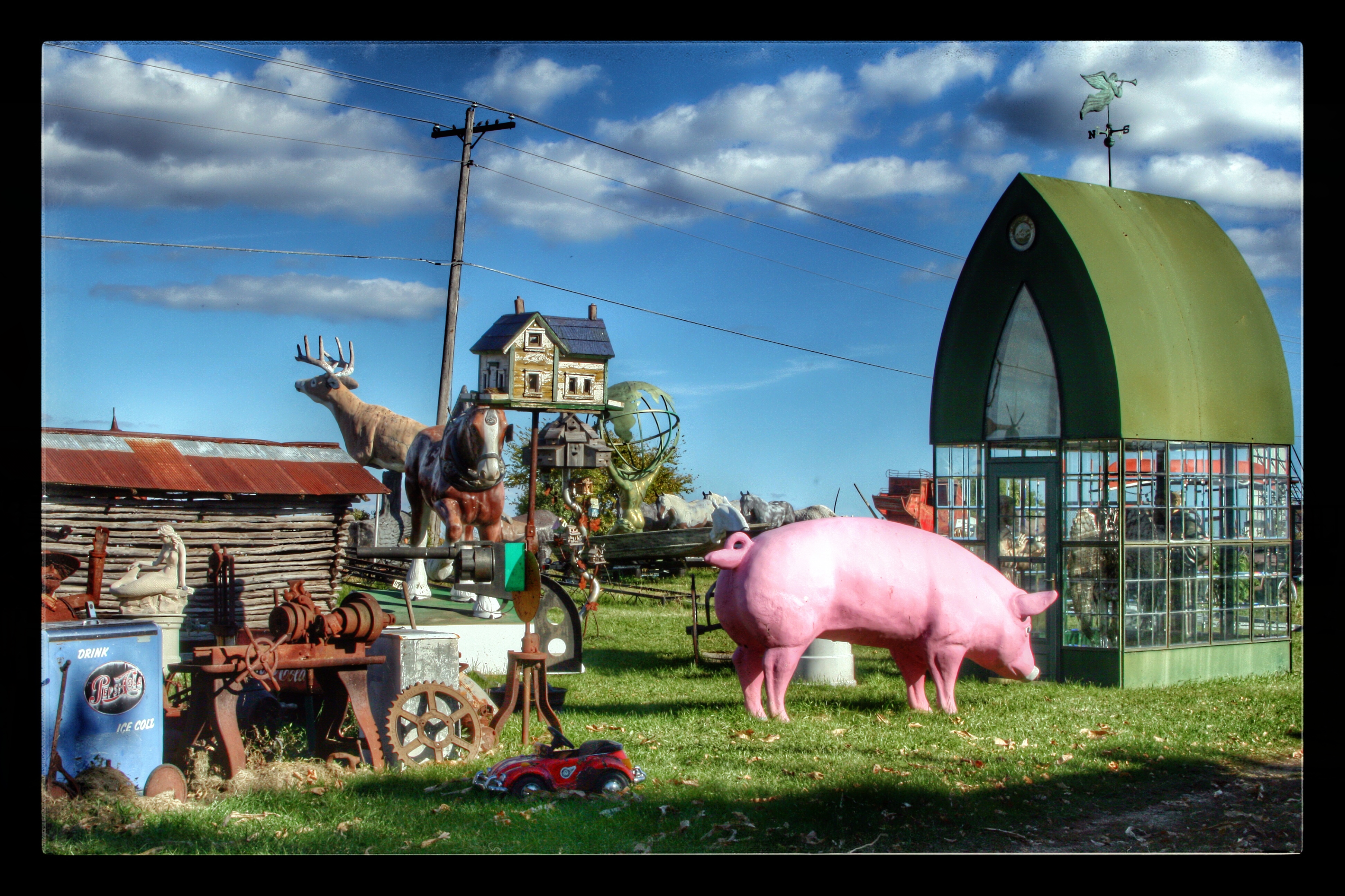 Our next stop was M. Schettl Sales in Oshkosh. It won’t be easy to describe this place, but I’ll try. Basically, its a home supply store — think plumbing, paint, kitchen cabinets, electrical appliances — that then got totally out of control and weird. Inside and outside the buildings there are hundreds of … things. More precise, I can’t get. You’ll get some idea from these photos.
