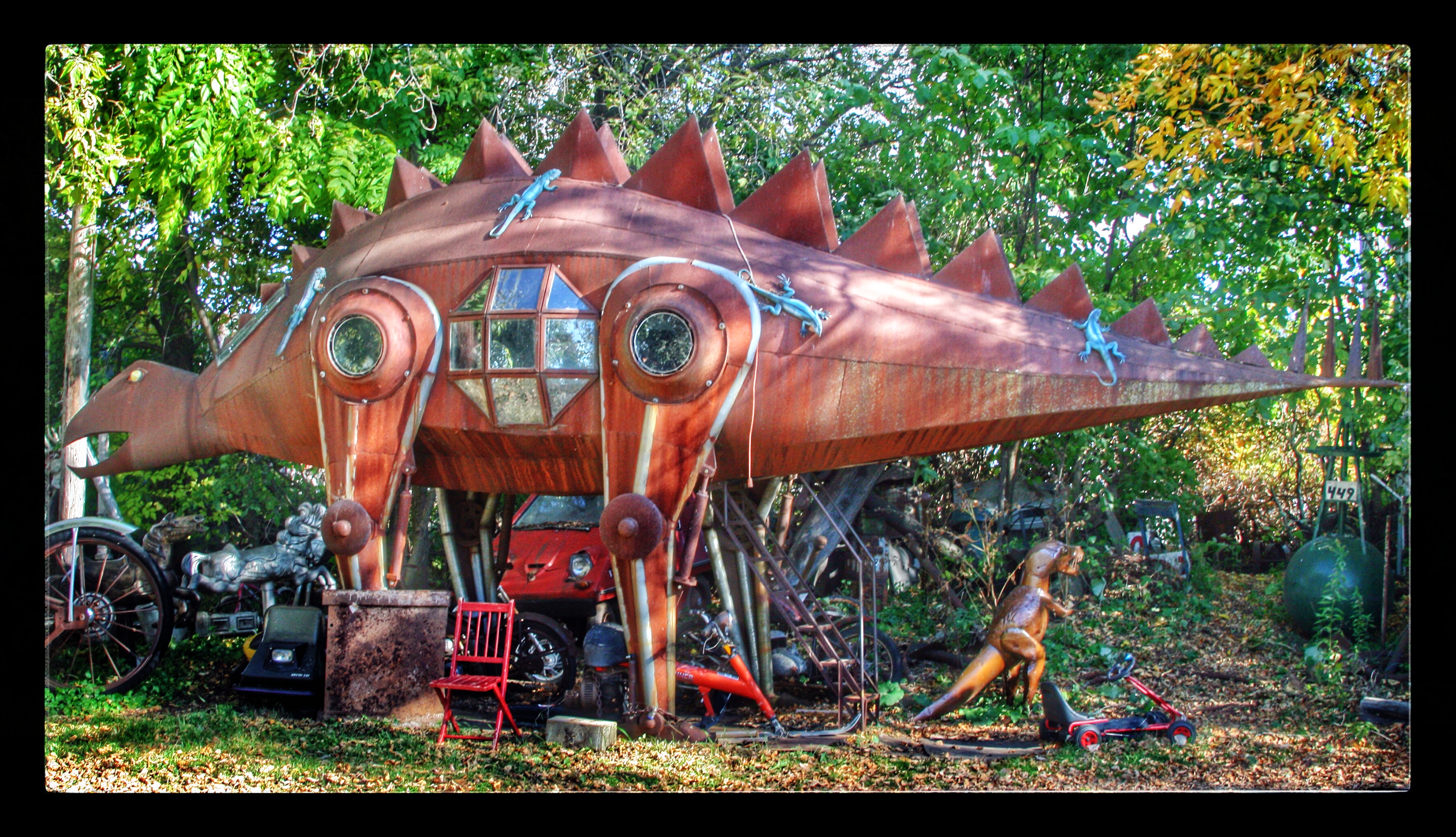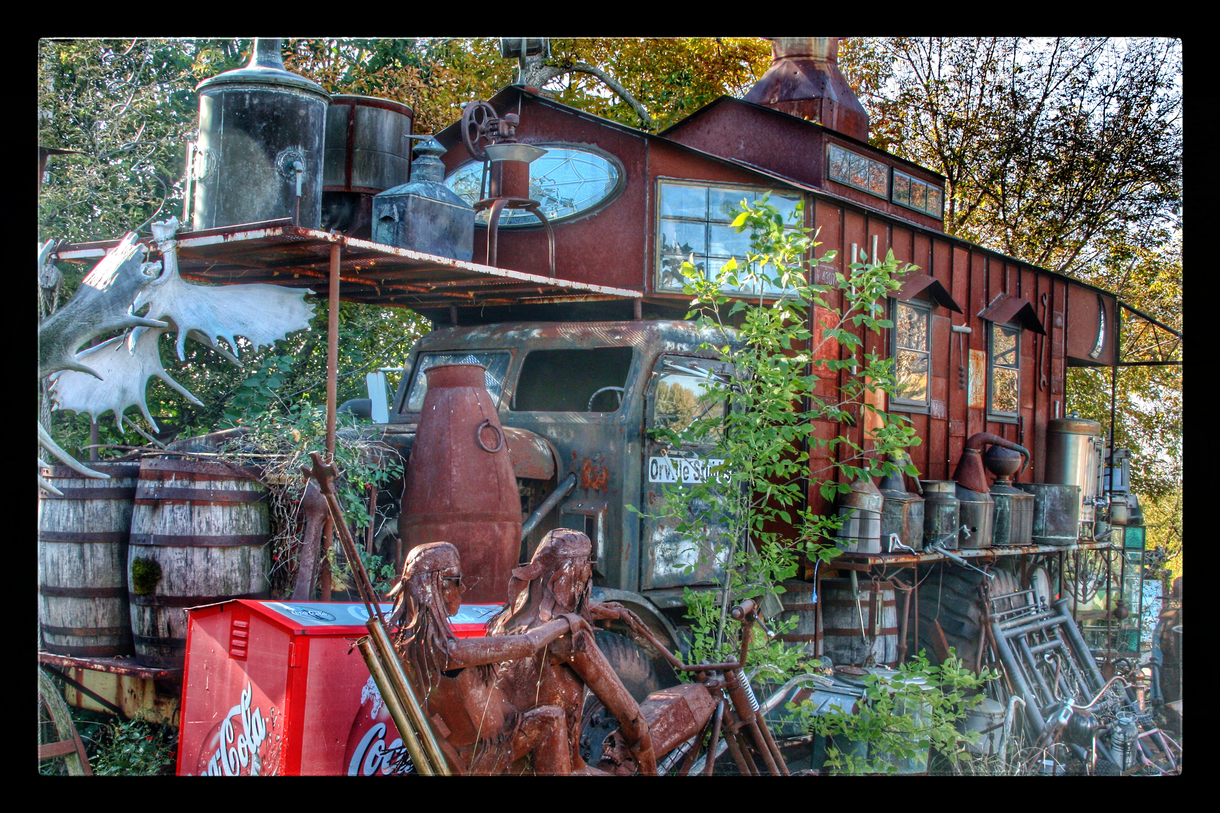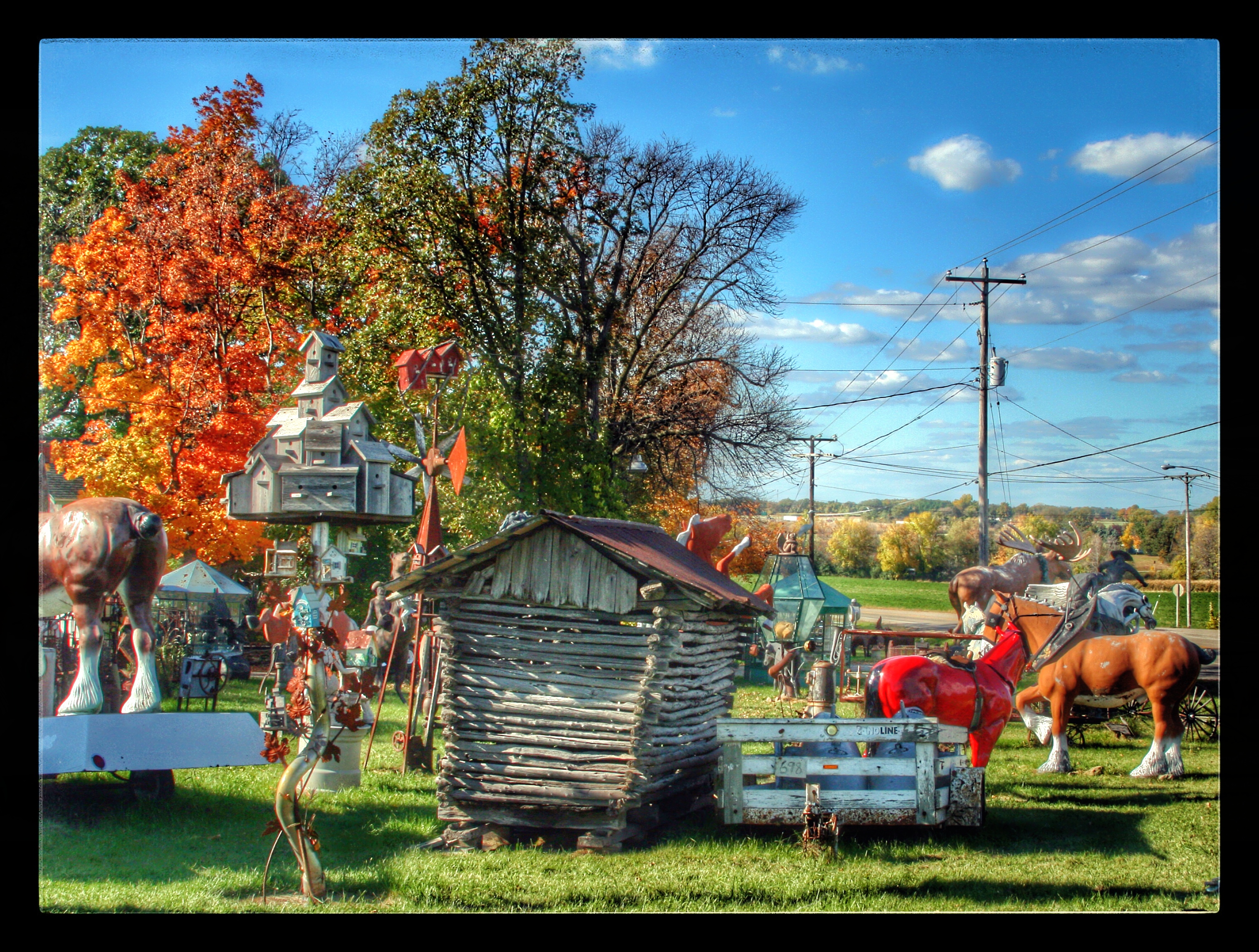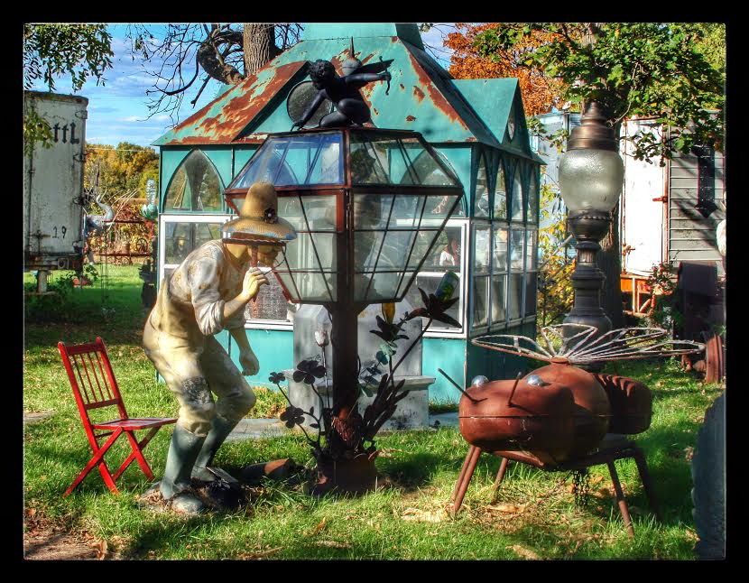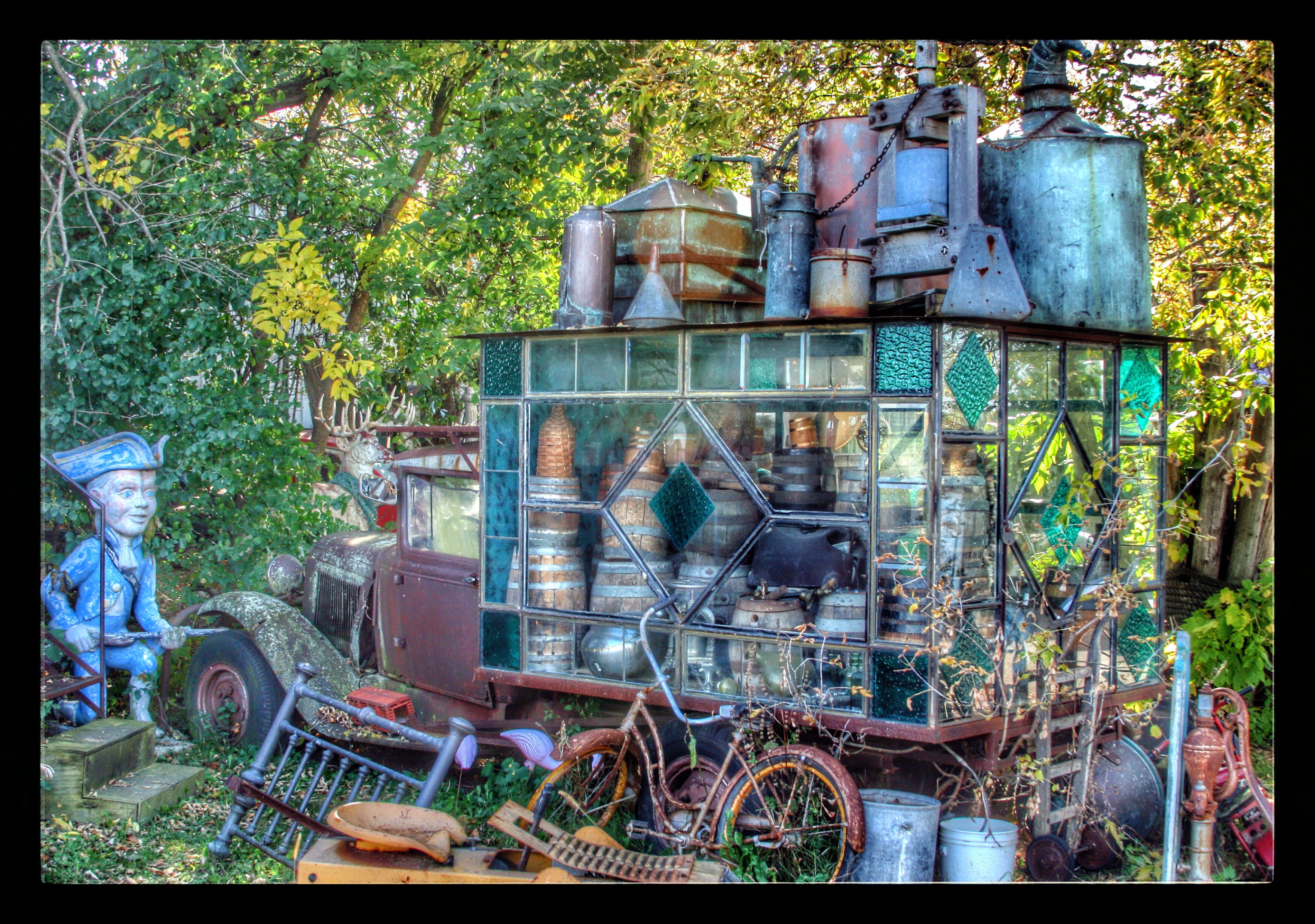 Our next stop was M. Schettl Sales in Oshkosh. It won’t be easy to describe this place, but I’ll try. Basically, its a home supply store — think plumbing, paint, kitchen cabinets, electrical appliances — that then got totally out of control and weird. Inside and outside the buildings there are hundreds of … things. More precise, I can’t get. You’ll get some idea from these photos.