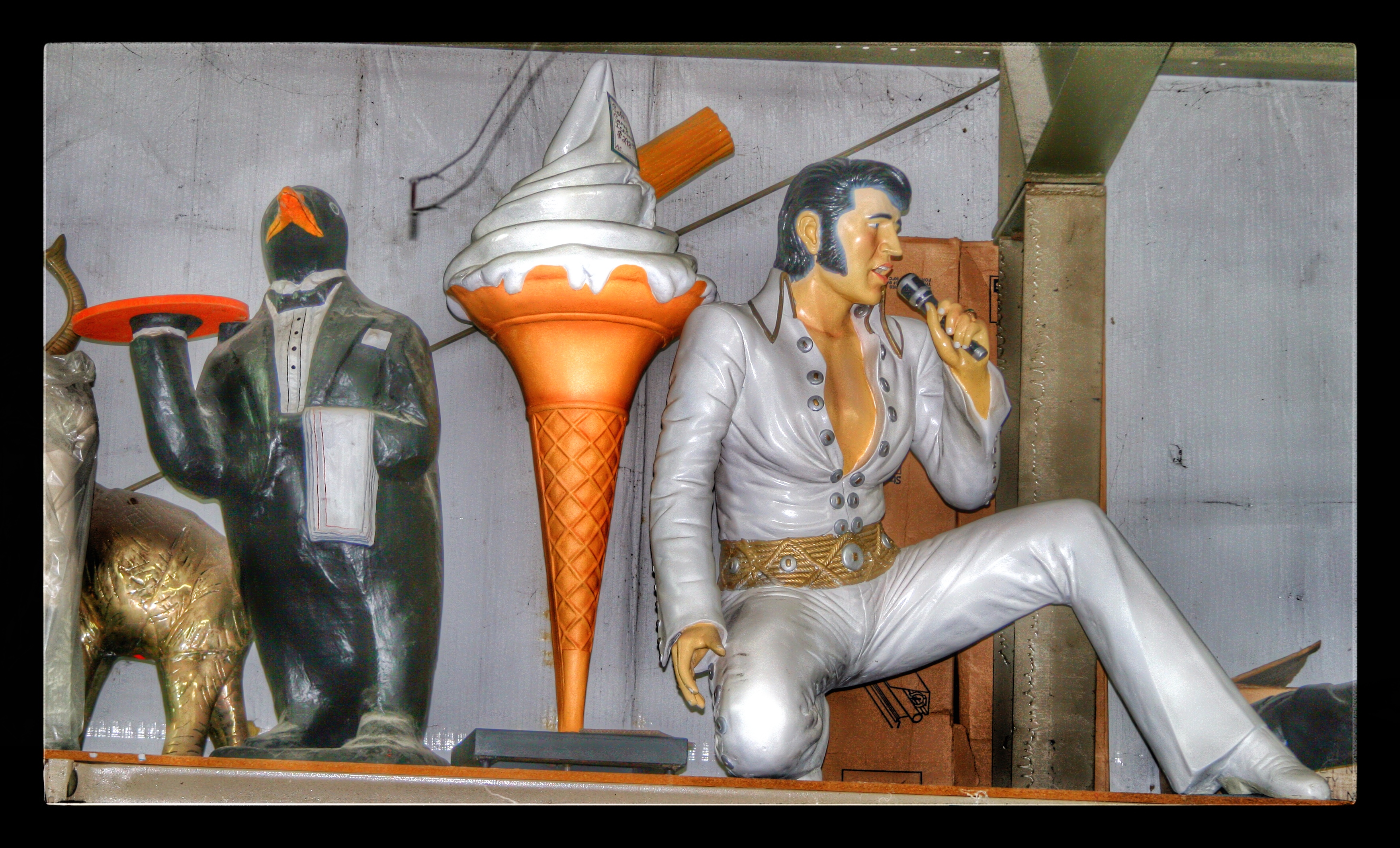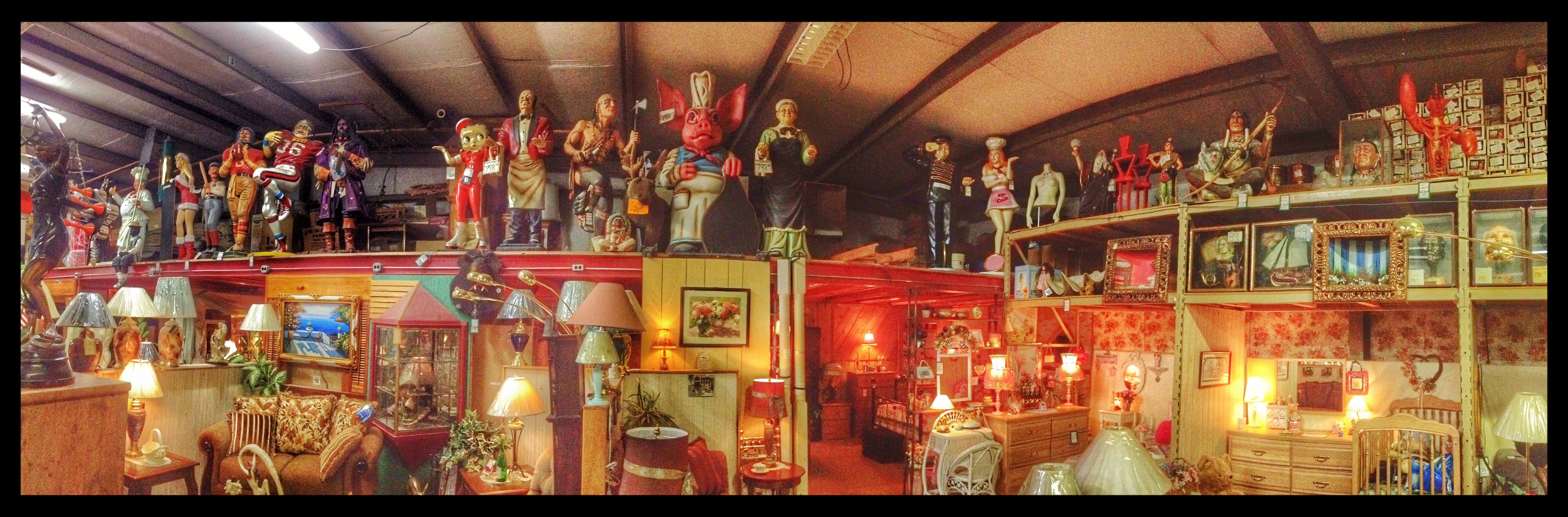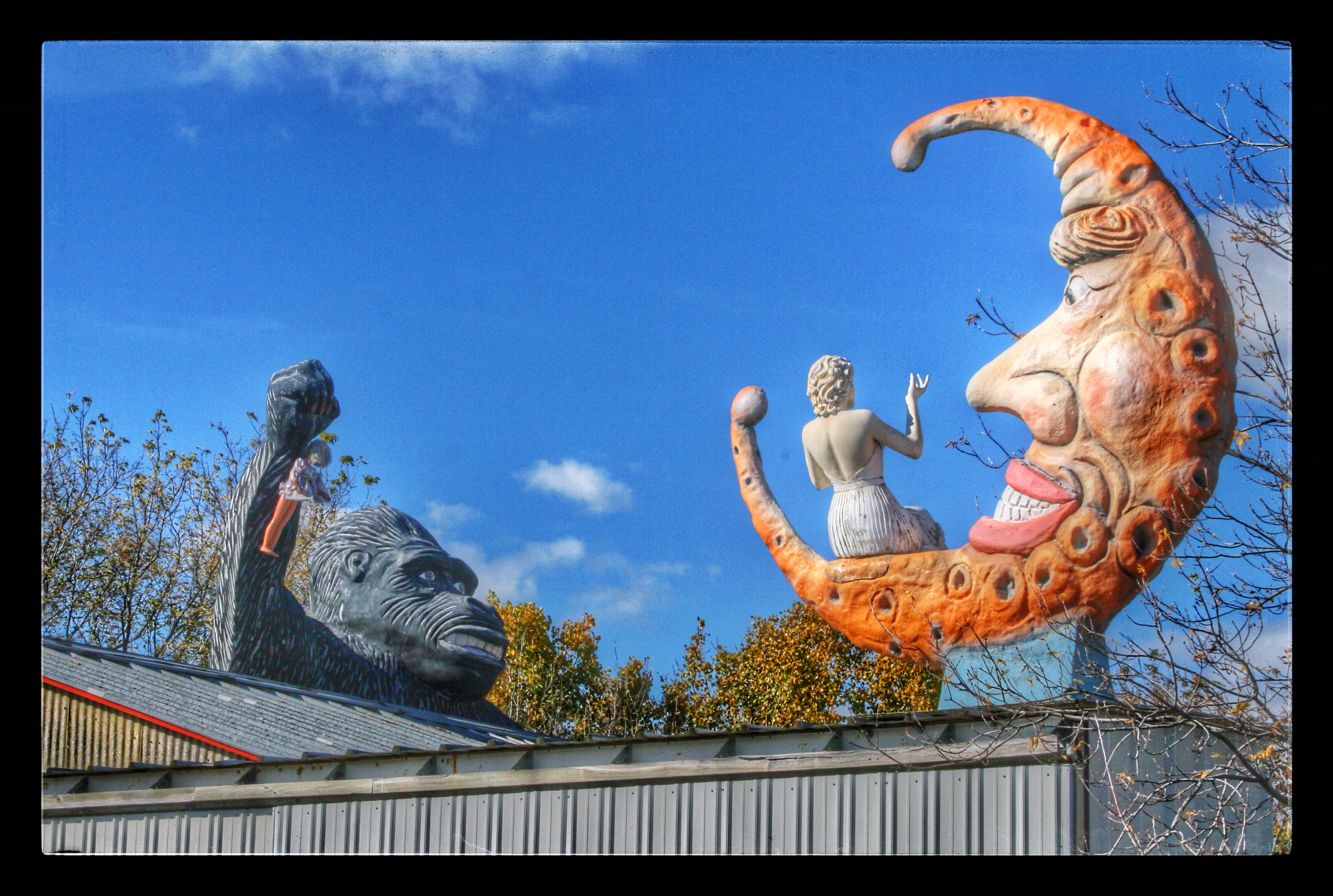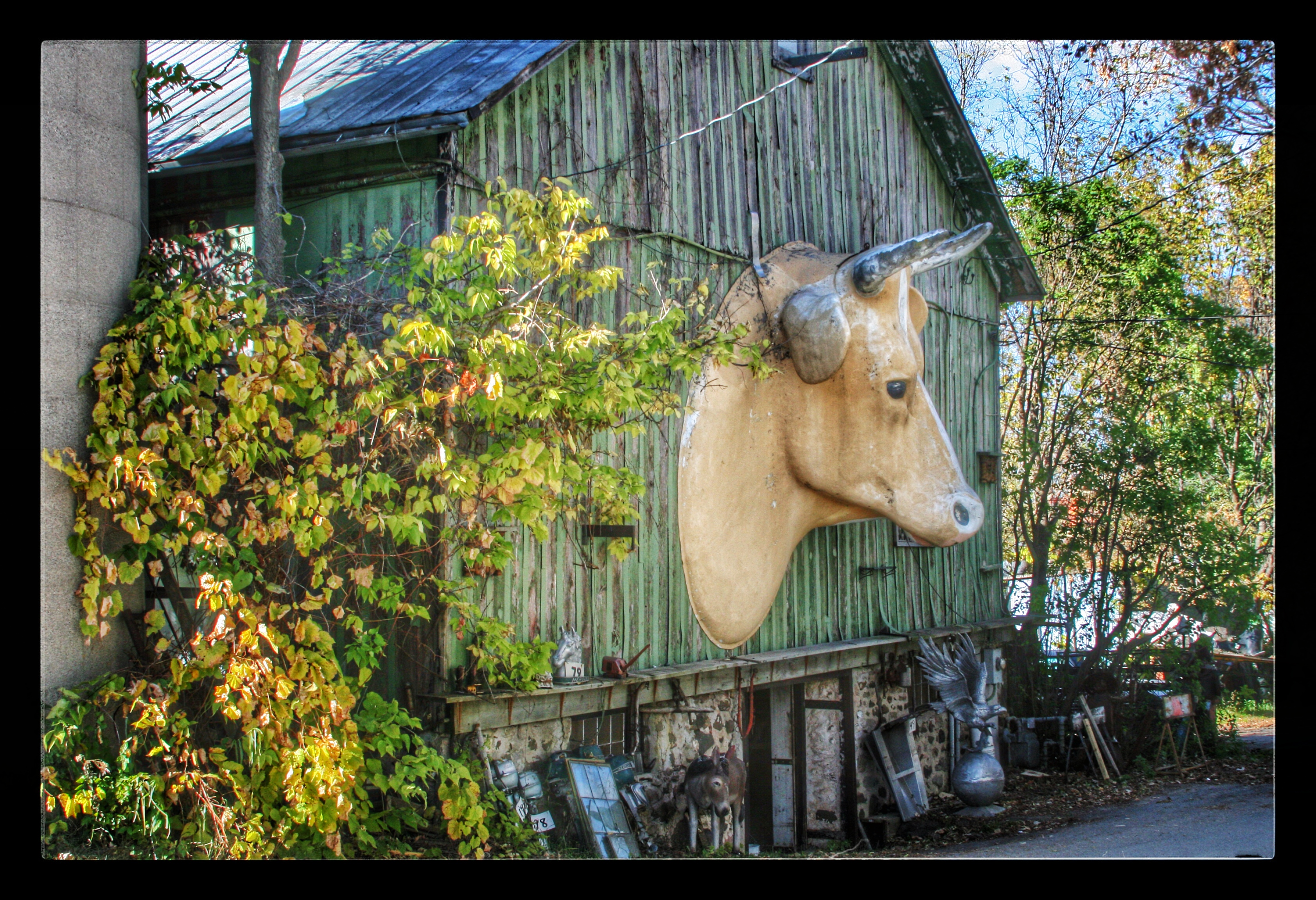 Our next stop was M. Schettl Sales in Oshkosh. It won’t be easy to describe this place, but I’ll try. Basically, its a home supply store — think plumbing, paint, kitchen cabinets, electrical appliances — that then got totally out of control and weird. Inside and outside the buildings there are hundreds of … things. More precise, I can’t get. You’ll get some idea from these photos.