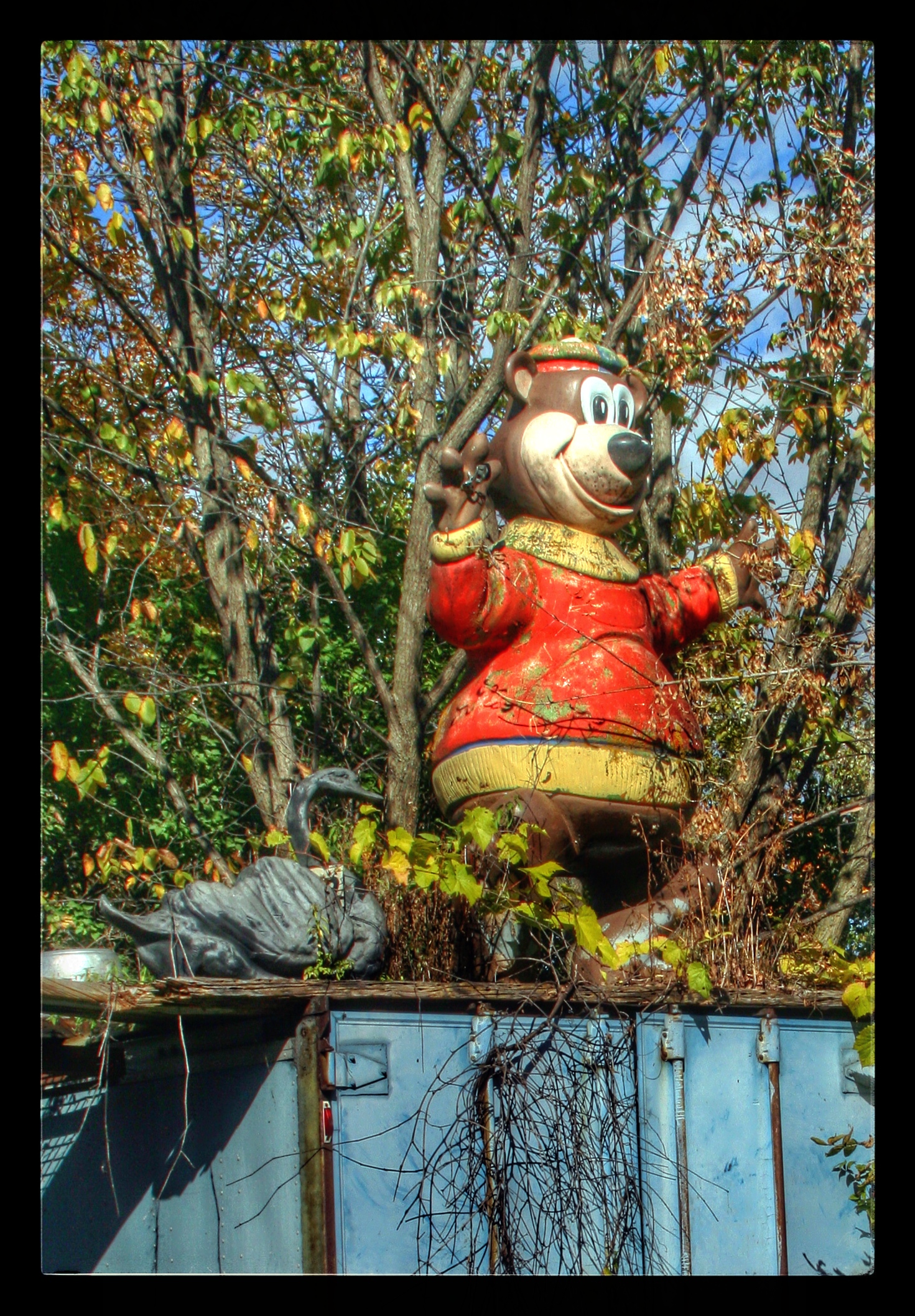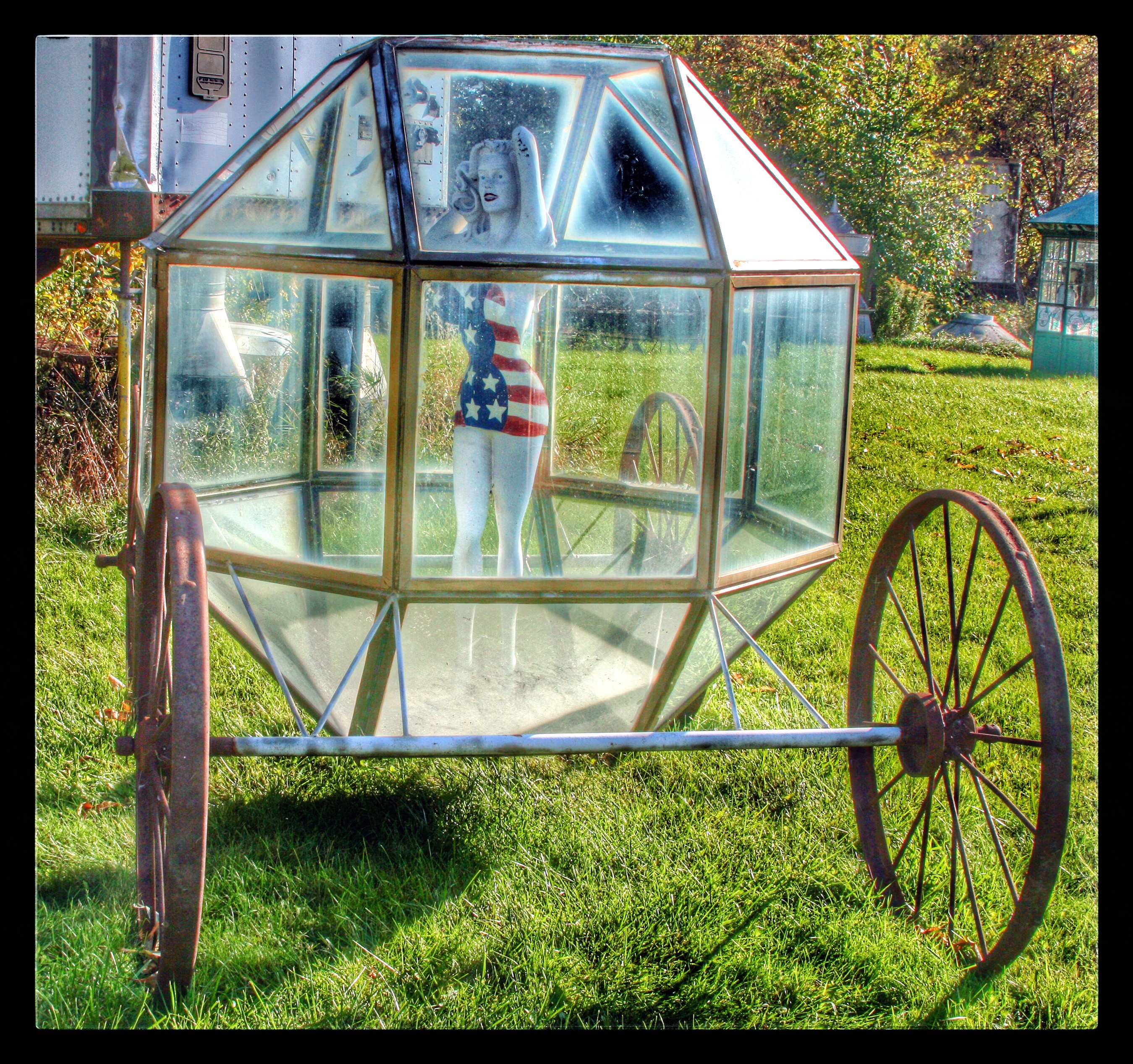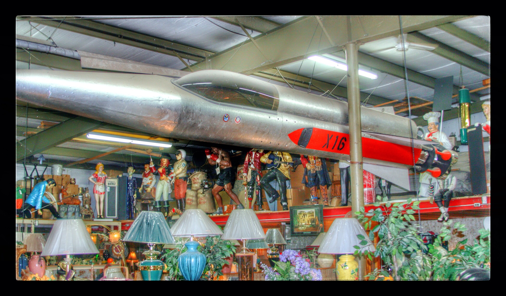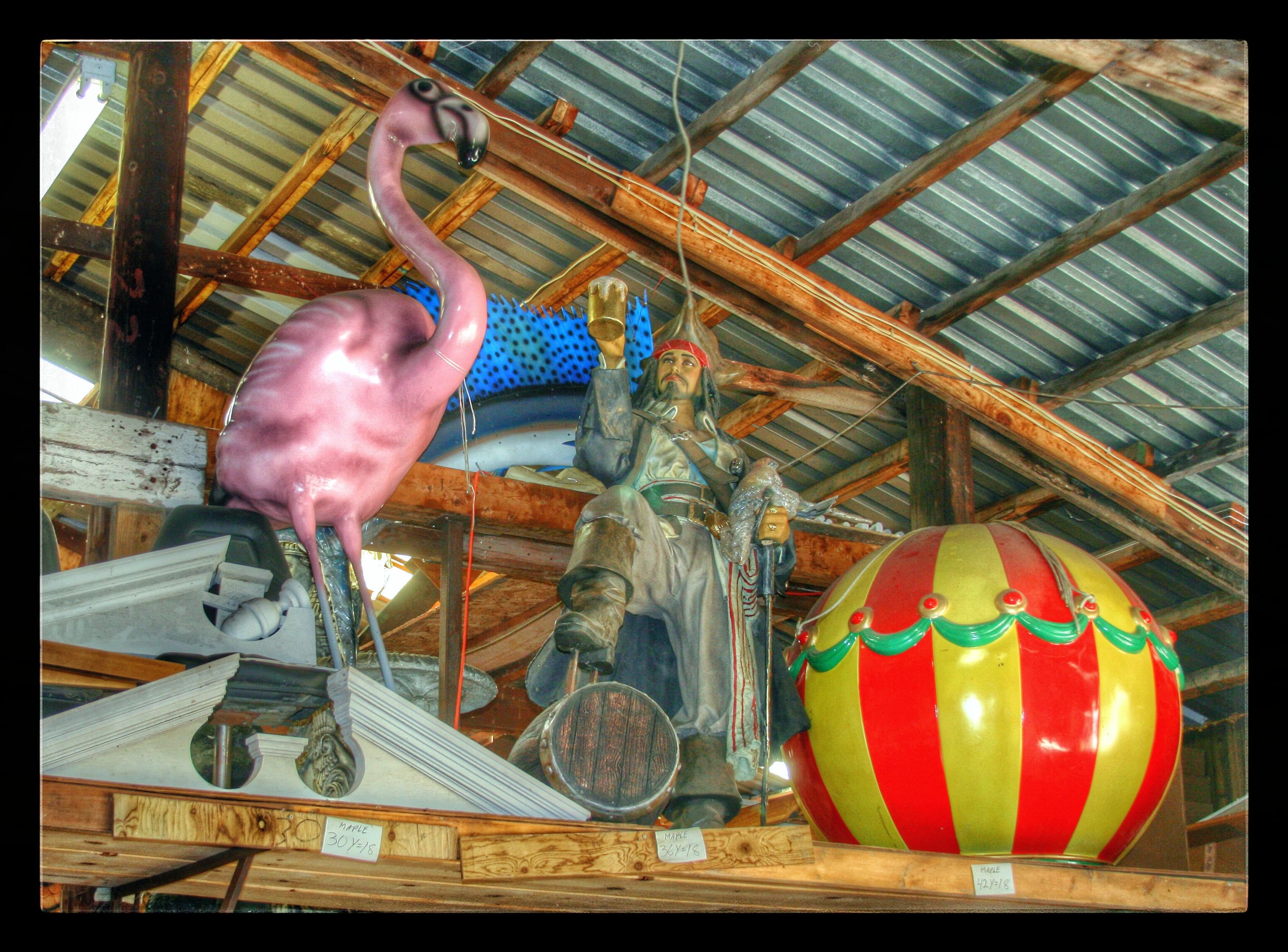 Our next stop was M. Schettl Sales in Oshkosh. It won’t be easy to describe this place, but I’ll try. Basically, its a home supply store — think plumbing, paint, kitchen cabinets, electrical appliances — that then got totally out of control and weird. Inside and outside the buildings there are hundreds of … things. More precise, I can’t get. You’ll get some idea from these photos.