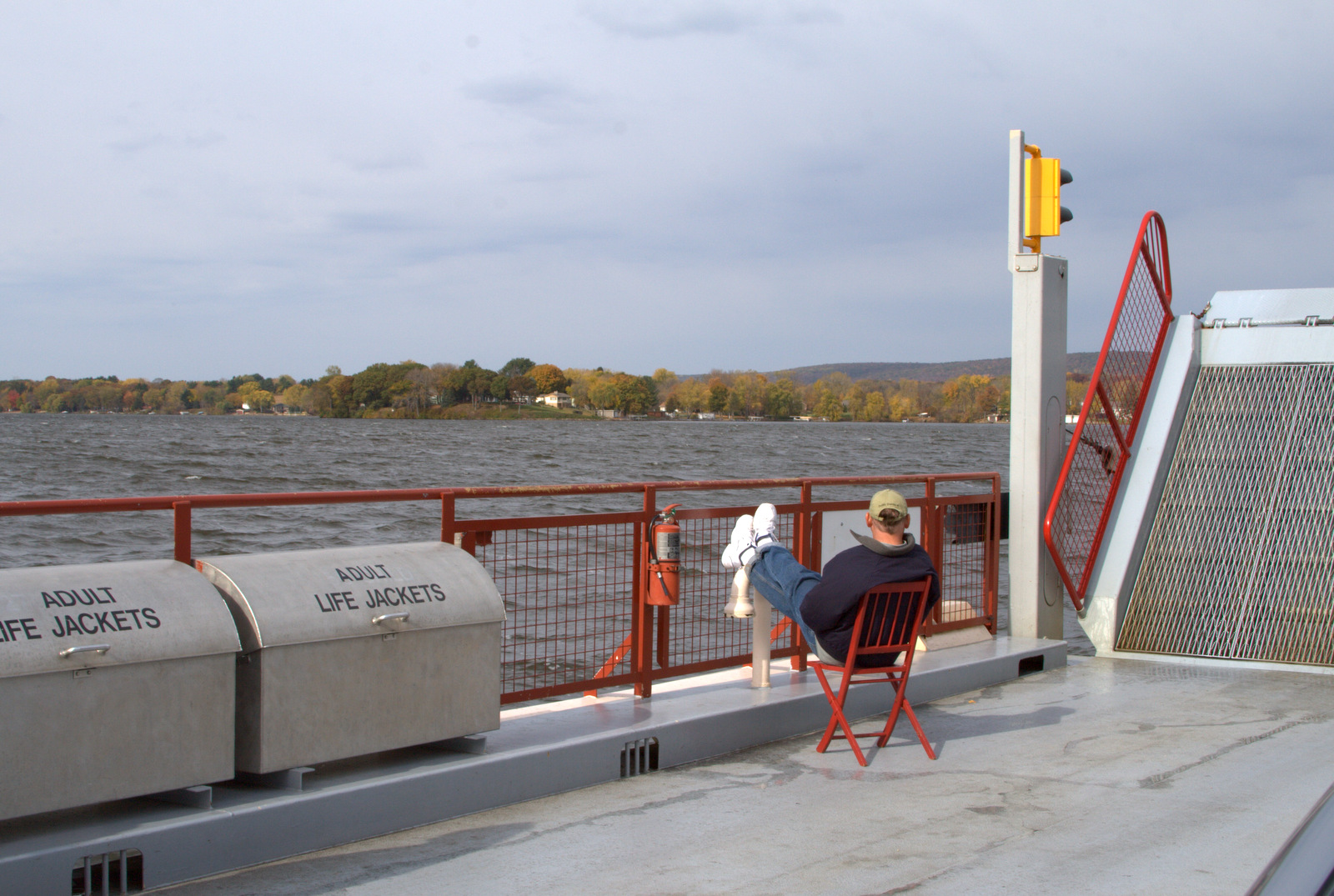 Because the trip only lasts seven minutes there are no passenger accommodations, and most people didn’t get out of their cars. But we did.