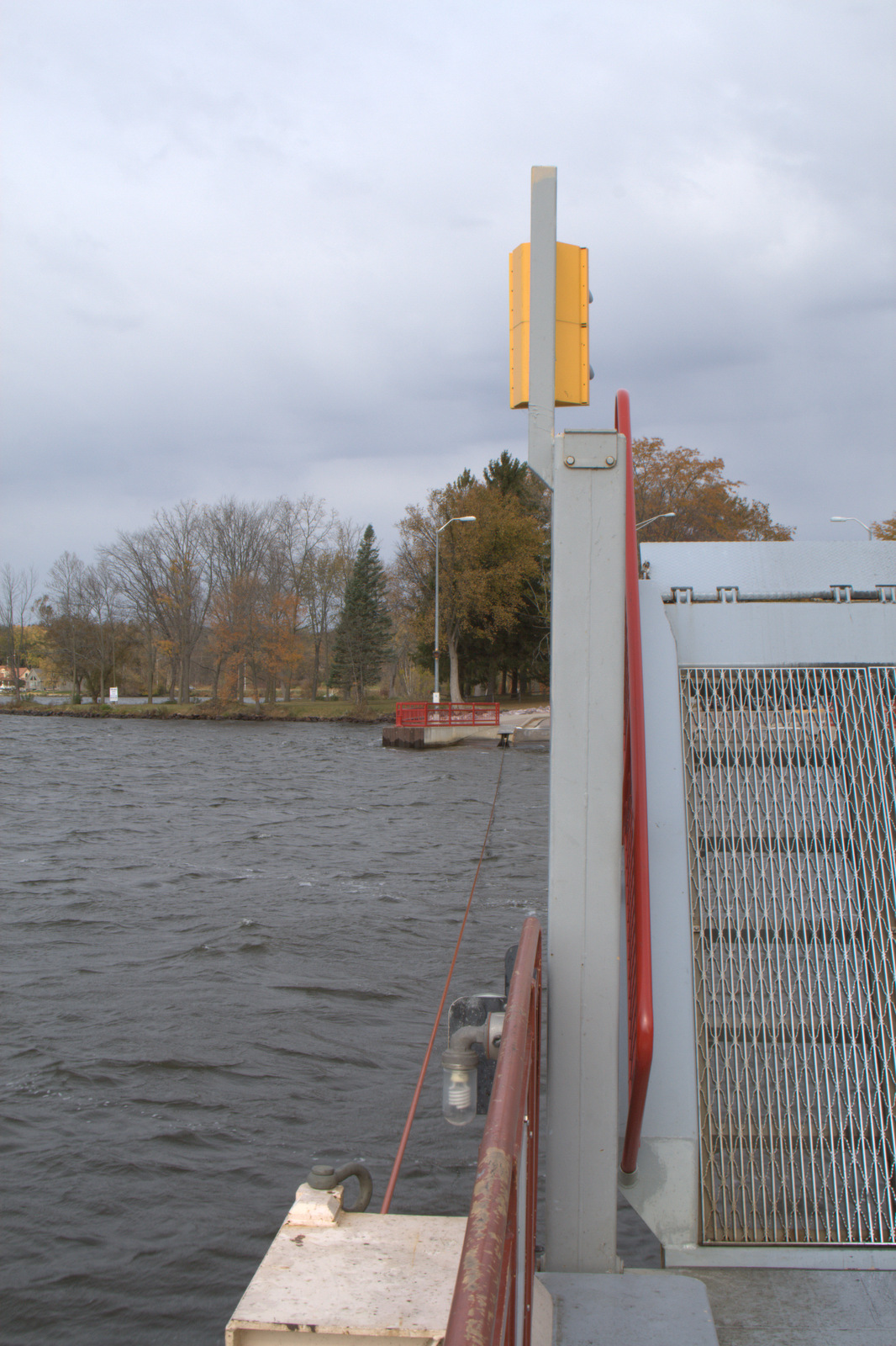 The ferry is pulled by three cables, barely visible in the shot above. One can be more clearly seen in this shot as the ferry approaches the western shore.