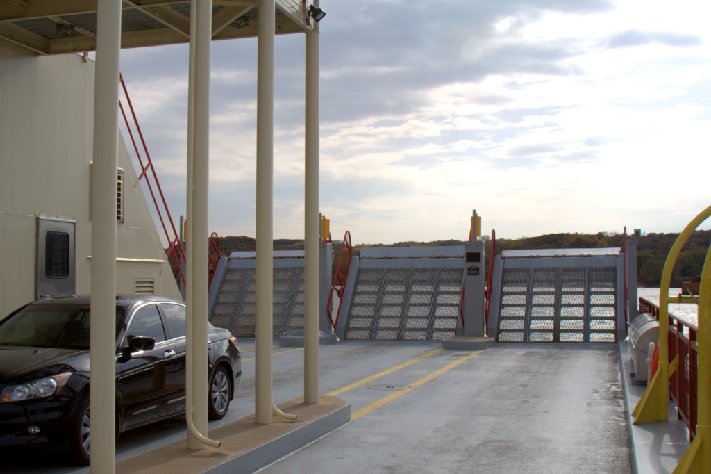 It carries up to 15 cars, although there were only seven on our trip, and it travels back and forth 24 hours a day all year long except when conditions (such as ice) prevent it from operating.