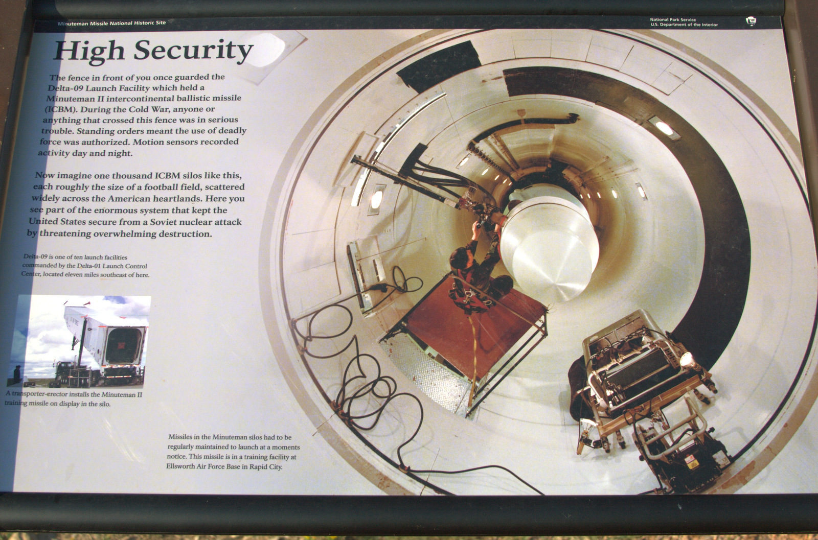 This is the site of a silo that held a Minuteman Missile with a 1.2-megaton warhead. Two of them contained more explosive power than all the bombs used in WWII, including the atomic weapons dropped on Hiroshima and Nagasaki. It was one of over 1,000 missiles deployed in the Midwest and Great Plains in the 1960s. As a result of the Strategic Arms Reduction Treaty of 1991, many of the missile sites were deactivated and destroyed. This one was kept to be part of the National Park system, although there is just a training missile in the silo.