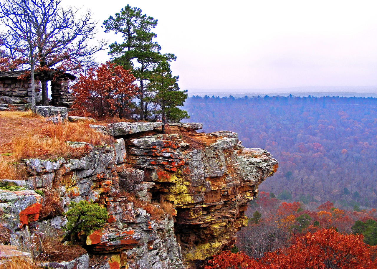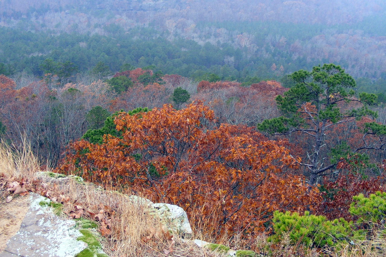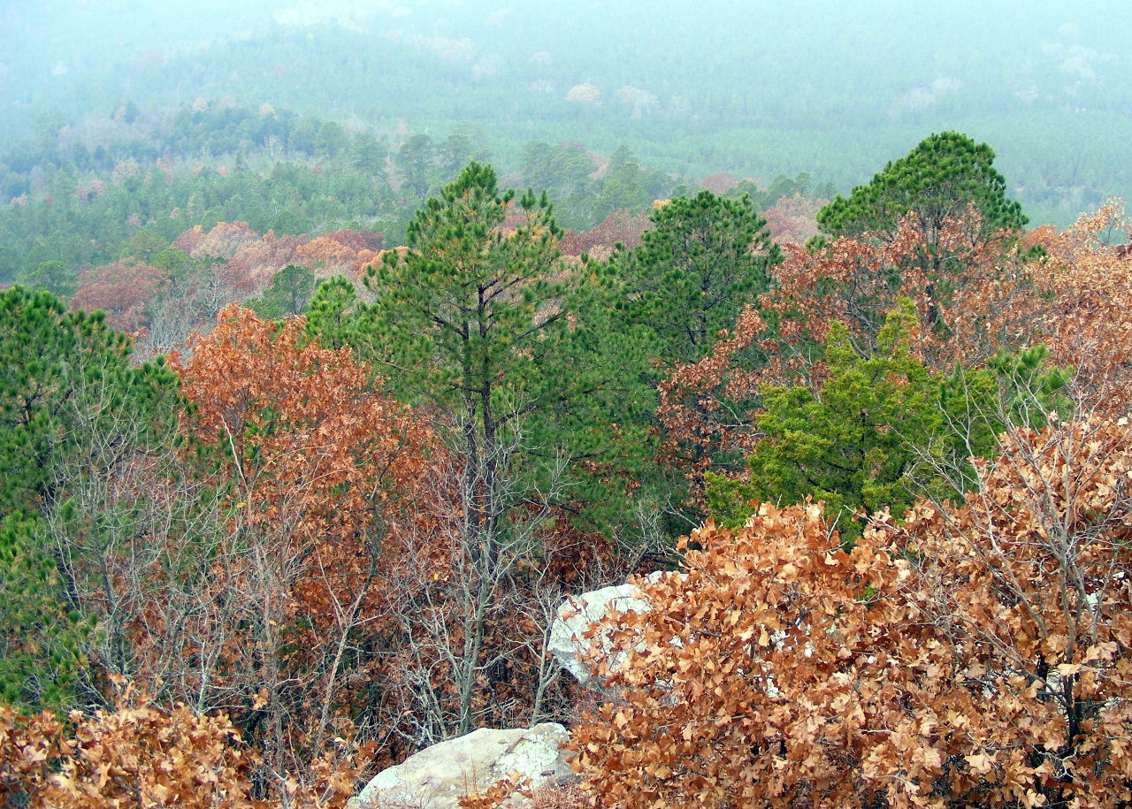 On a misty morning, the Saturday after Thanksgiving, I took these photos looking west from the tip of Petit Jean Mountain.