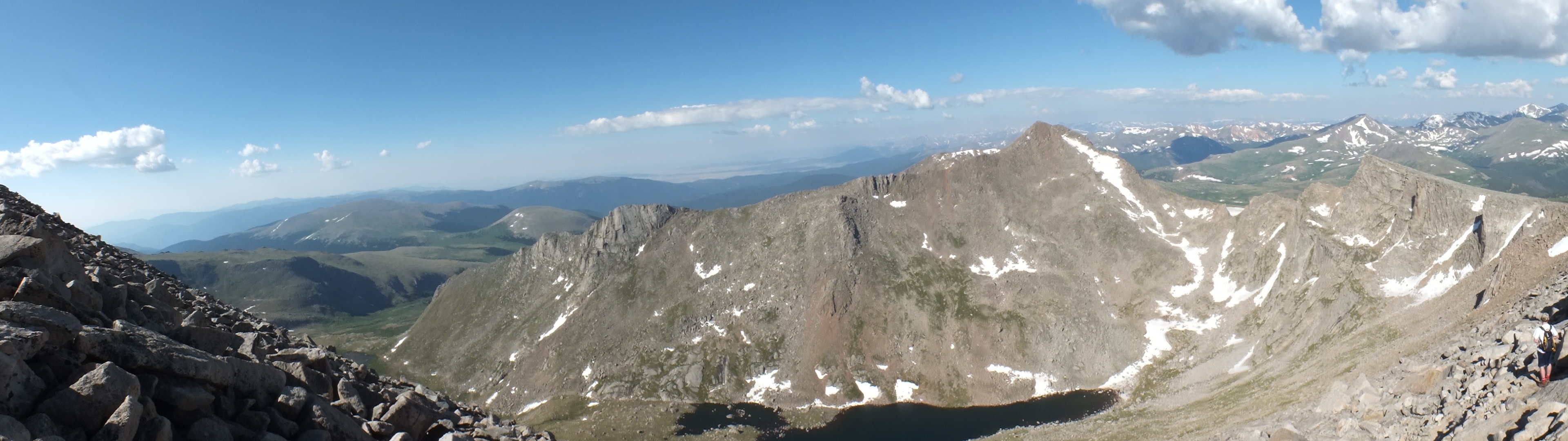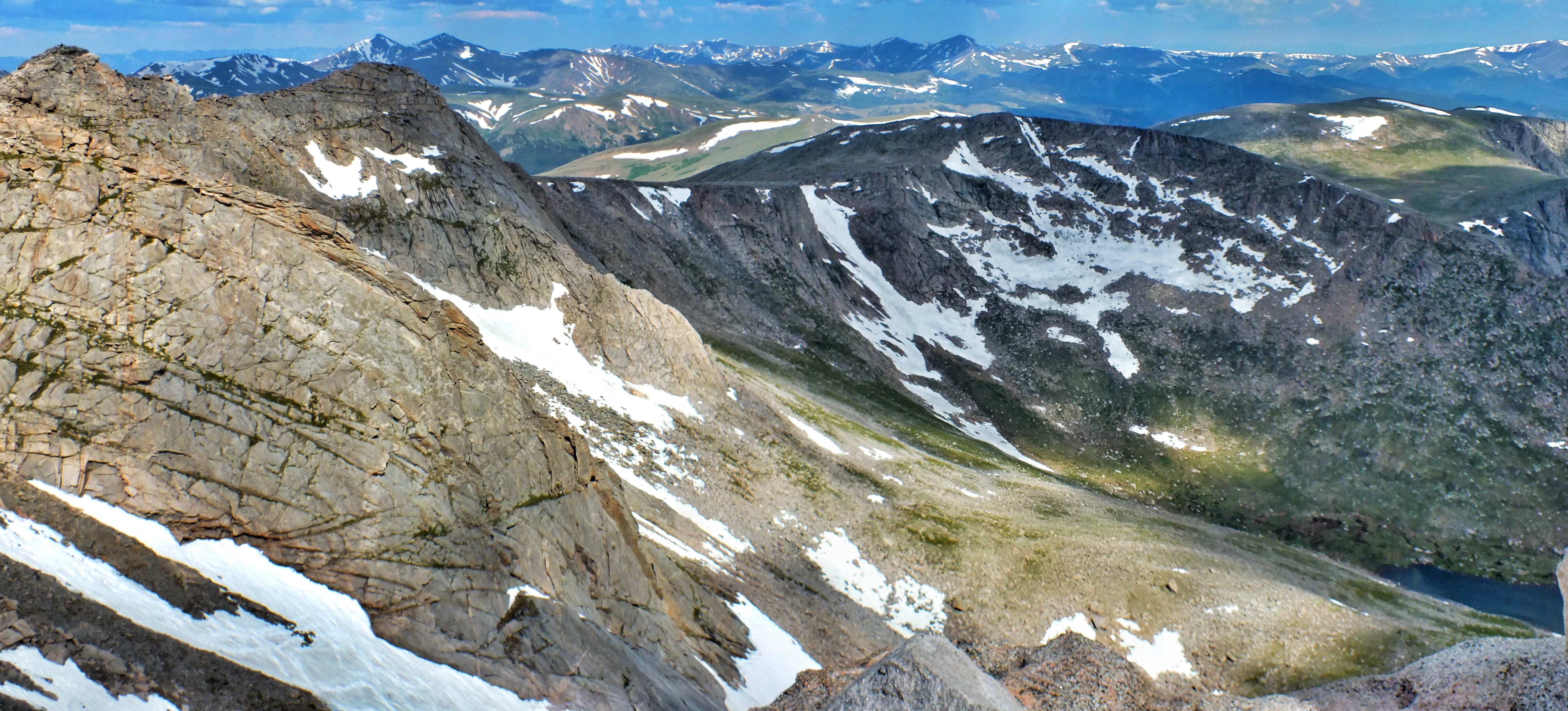 I think that’s Abyss Lake down in the valley. The Chicago Peaks have the deepest glacier tarns in the Rockies, and many of them contain lakes.