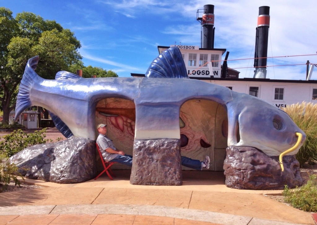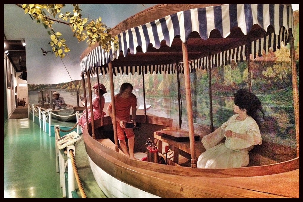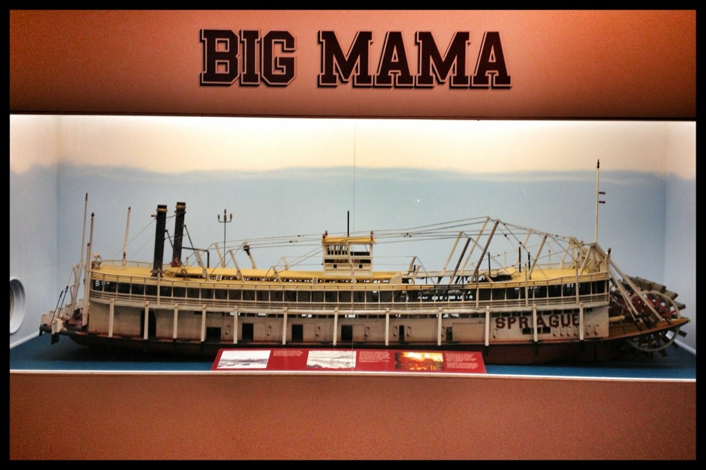 We arrived in Dubuque around 9:30, and spent the rest of the morning in the museum. It’s an eclectic place with displays on the river and its ecology, on floods that occurred locally, on the history of steamboats and commerce and boat building and industry. In the main building there are tanks full of the sort of wildlife that can be found in the river. Upstairs, there are tanks of turtles from around the world. In another building there are more tanks with salt water fish that don’t seem to have any connection to any river. There’s a Hall of Fame of people who are connected to the American rivers in some way. There’s just s little bit of everything. It’s all done well, and much of it is interesting.