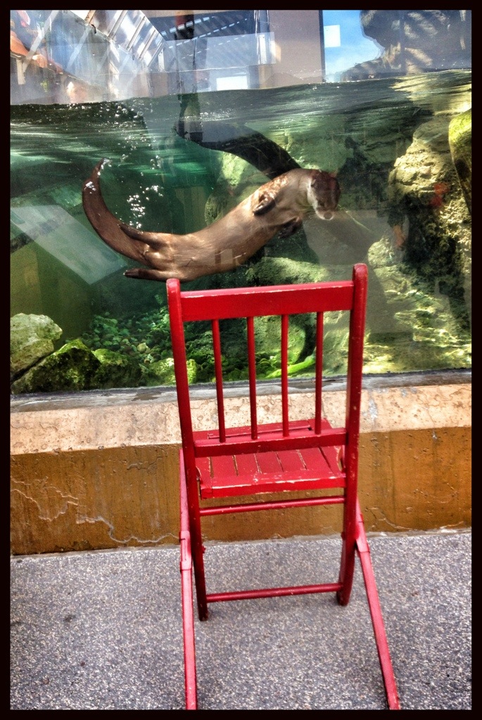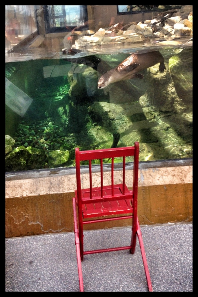 As soon as I put the chair in front of the Otter tank, one came over to investigate.