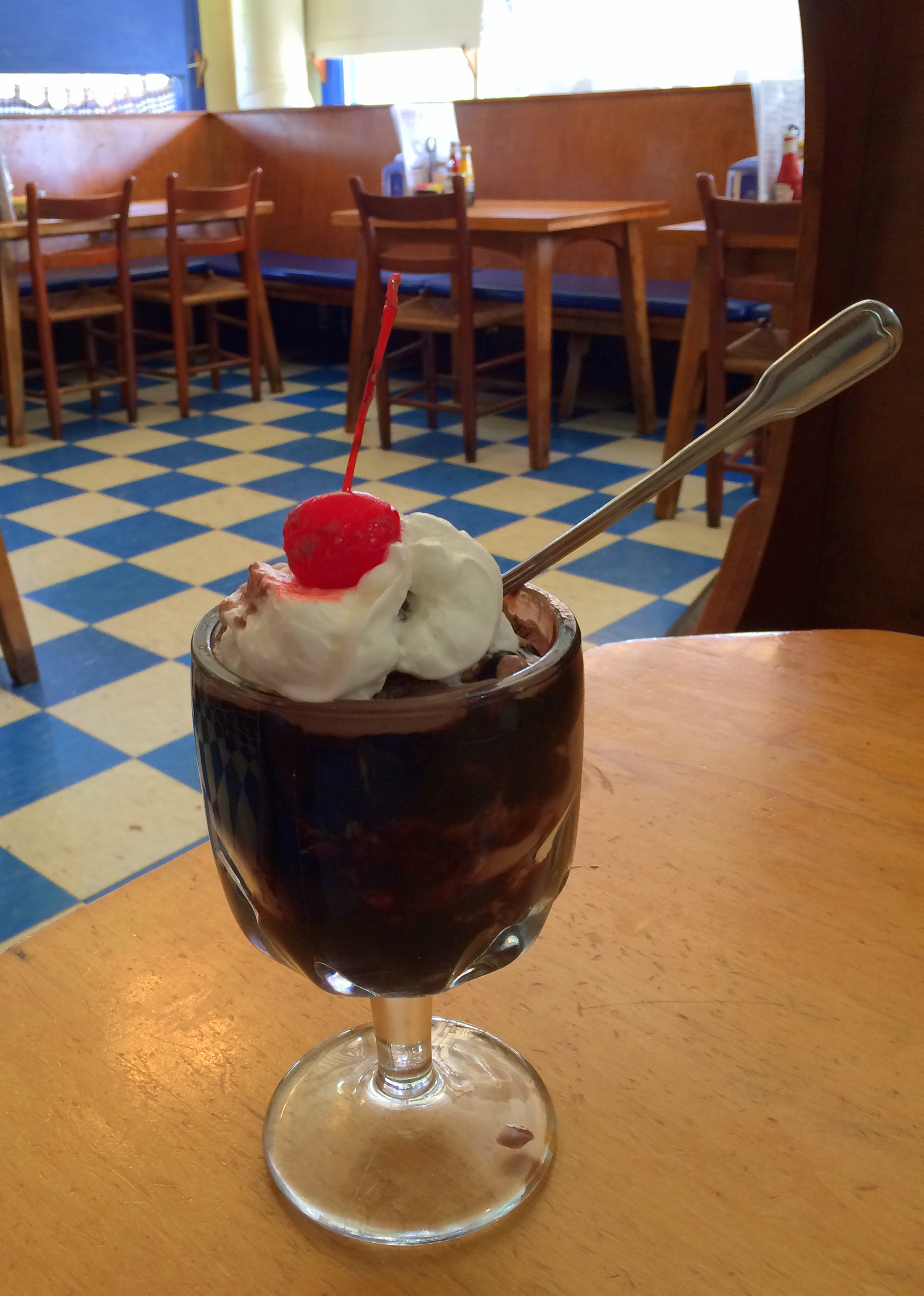 I had a simple, but excellent, grilled-cheese sandwich with coleslaw. And a hot fudge sundae for dessert. Everything was great, but my favorite part was the restaurant itself. It looked like it hadn’t been updated a bit since the 1940s.