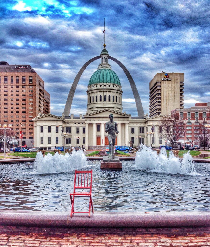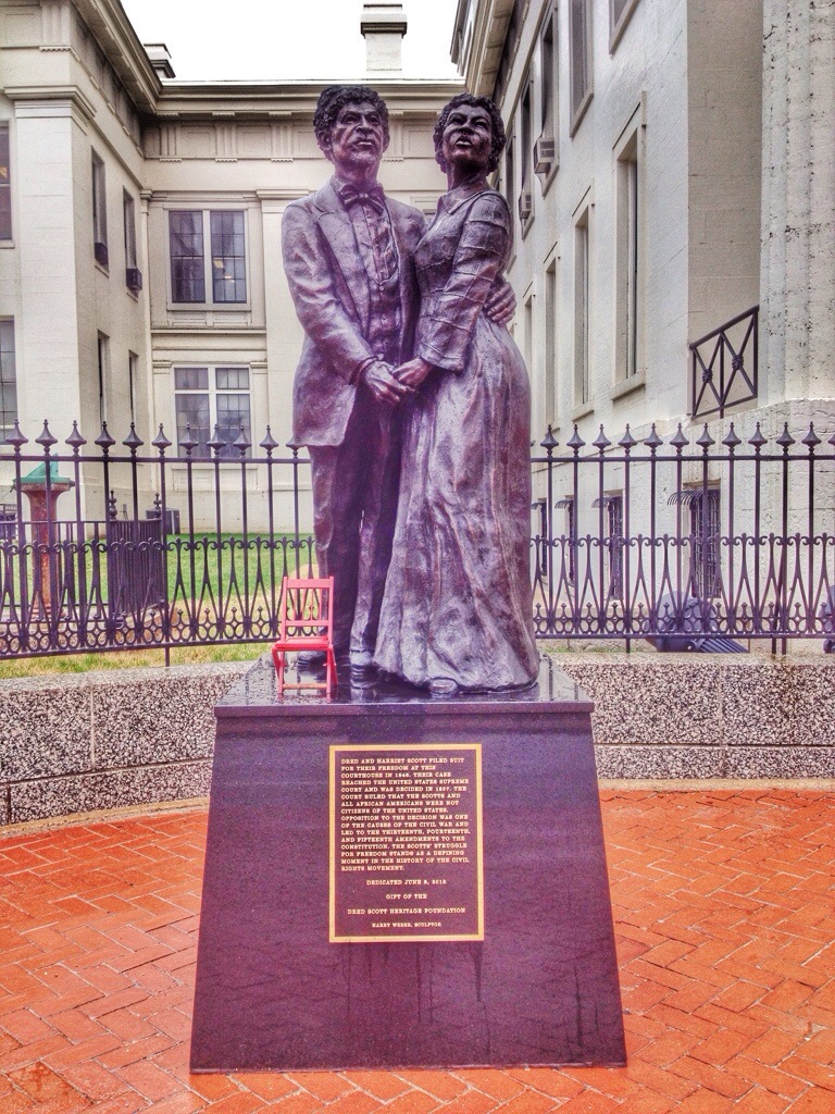 My hotel in downtown St. Louis was right across the street from the Old Courthouse. (I doubt that’s what it was called when it was used as a courthouse.) It’s part of the Jefferson National Expansion Memorial. A monument to Dred and Harriet Scott stands out front.