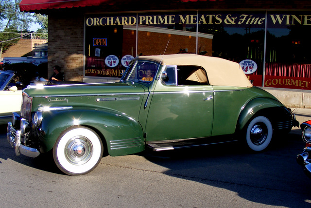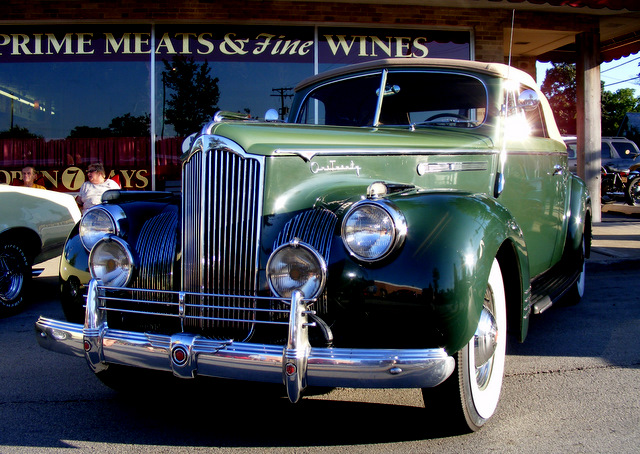 This beautiful car was parked in downtown one night in July, 2009. I think it’s a 1941, but I’m not sure. There was nobody around to ask. Well … there was one old guy who offered to sell it to me for $50, but as he wasn’t the owner, I passed.