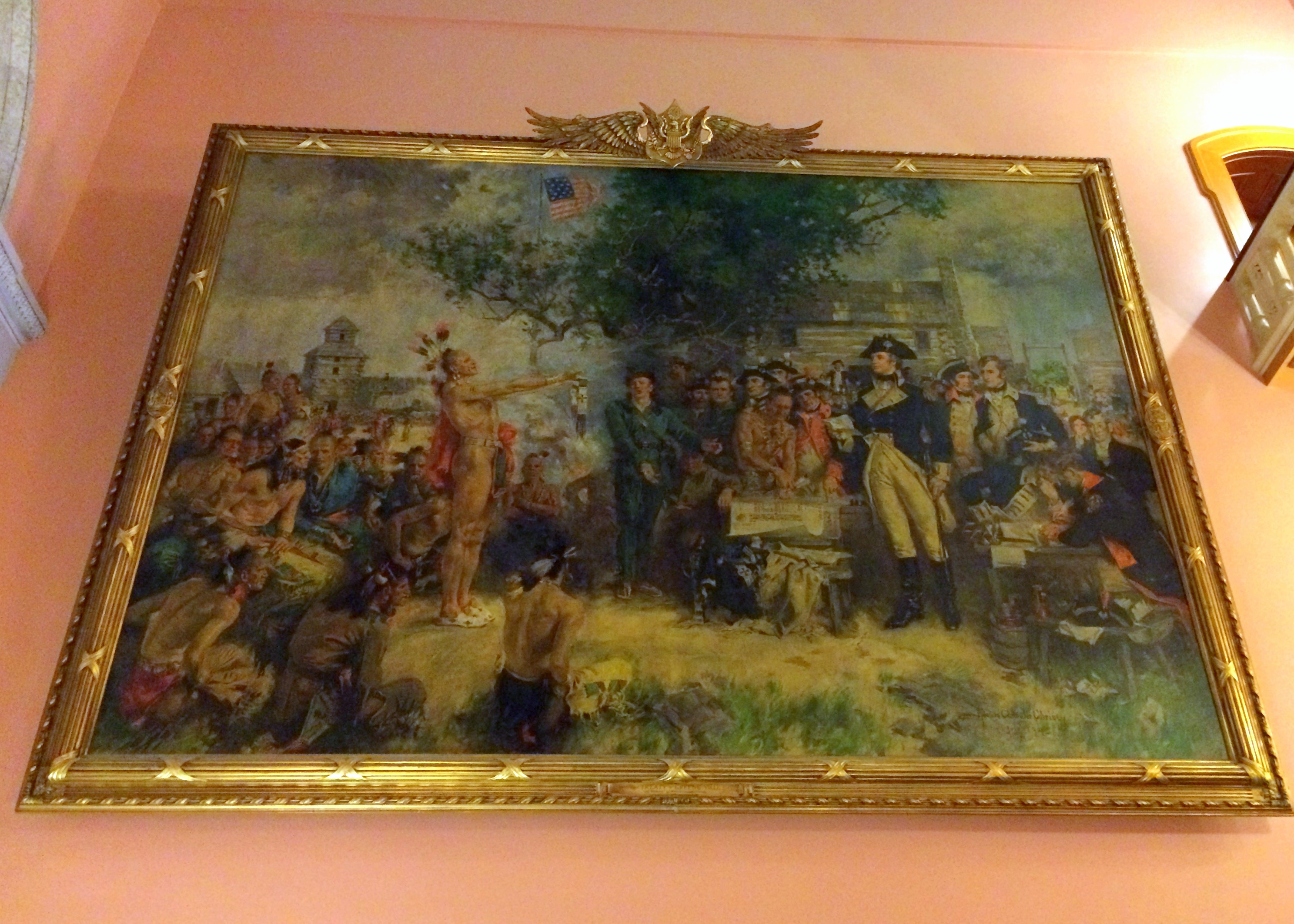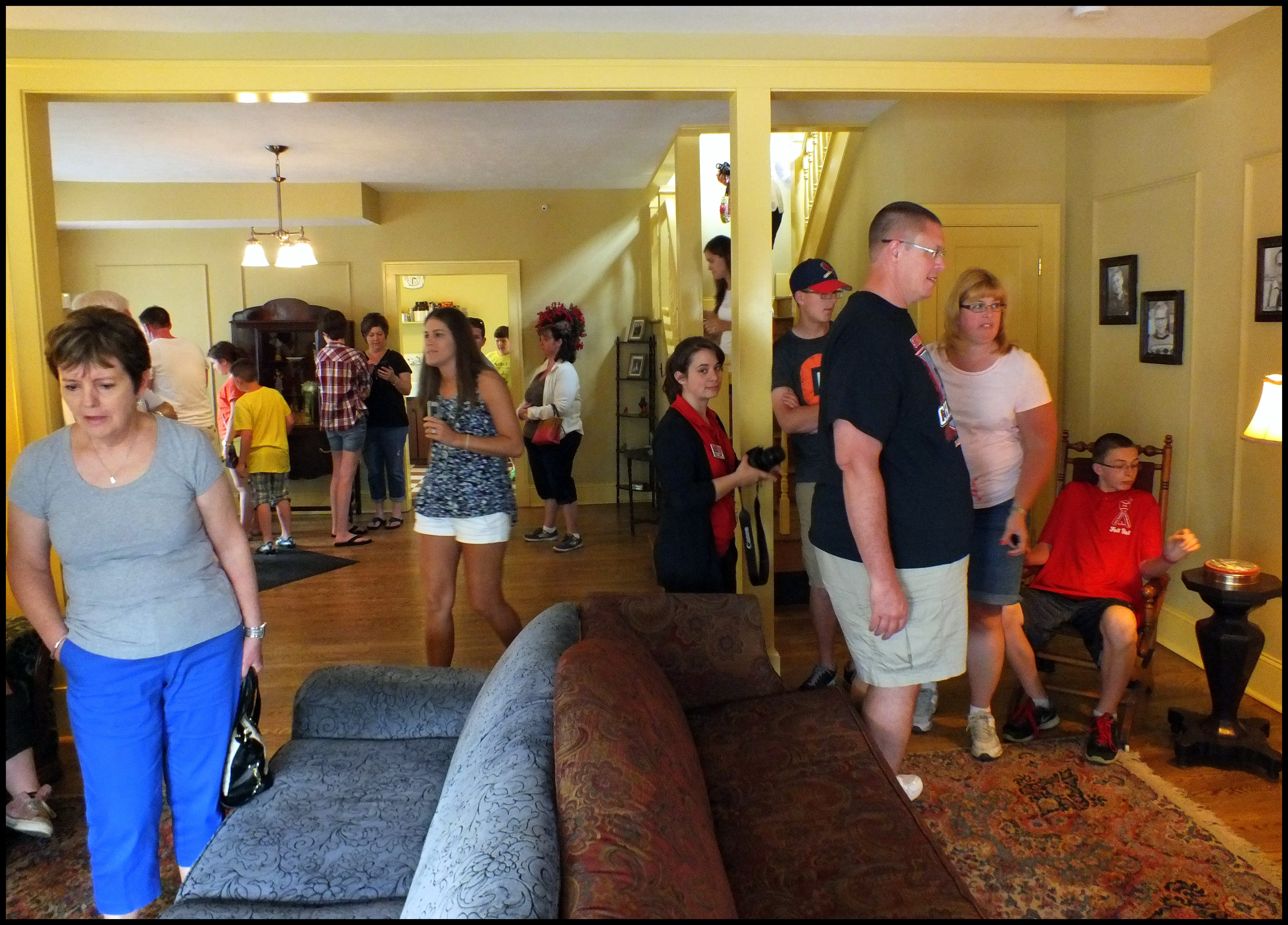 We paid a ridiculous amount for the tour and were ushered into the house by an enthusiastic young woman. (That’s her on the other end of the couch looking into the camera in the photo below.} There were probably 30 of us crowded into the front room as she gave us some information. She then let us wander about.