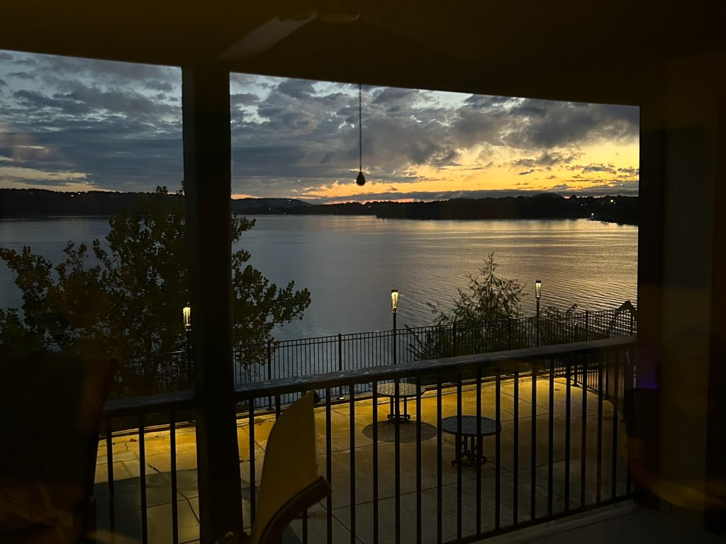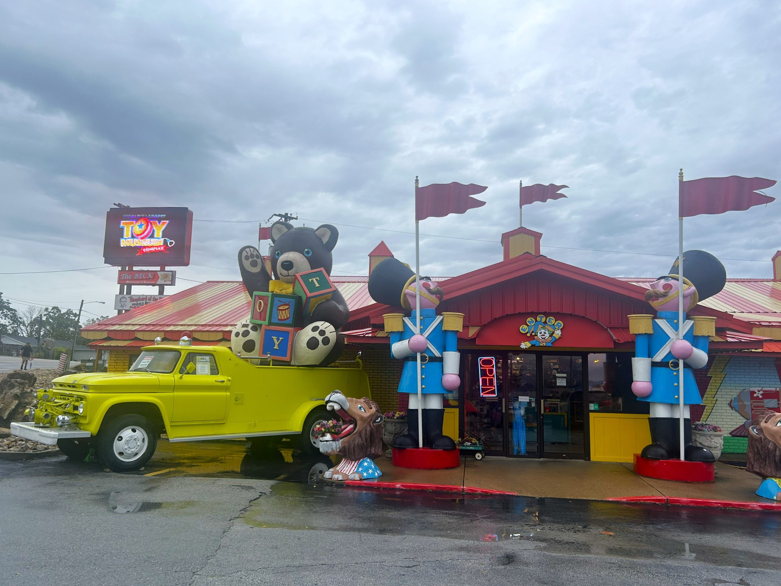 All we’d planned for this day was on show, so we hung around the condo for a while. I got restless, of course, so mid-afternoon we went to a local bakery called Simply Baked for savory pies. We drove into Branson and took our time wandering through a flea market. We each found some stuff to waste money on. We still had time to kill, so we visited the Trump store, which cracked me up no end.