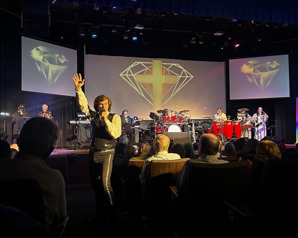 It was finally time for our show—#1 Hits of the 60’s. This consisted of a two-hour medley of songs from the 50’s to the 80’s, none of them lasting more than 35 seconds or so. In other words, just when I’d start getting into a song, they’d switch to another one. The cast consisted of overweight women and rather effeminate men doing random choreography while zipping through the songs. My wife enjoyed it, but I wanted out almost from the get-go. I’ll say this for them though — they must have set some sort of record for costume changes.