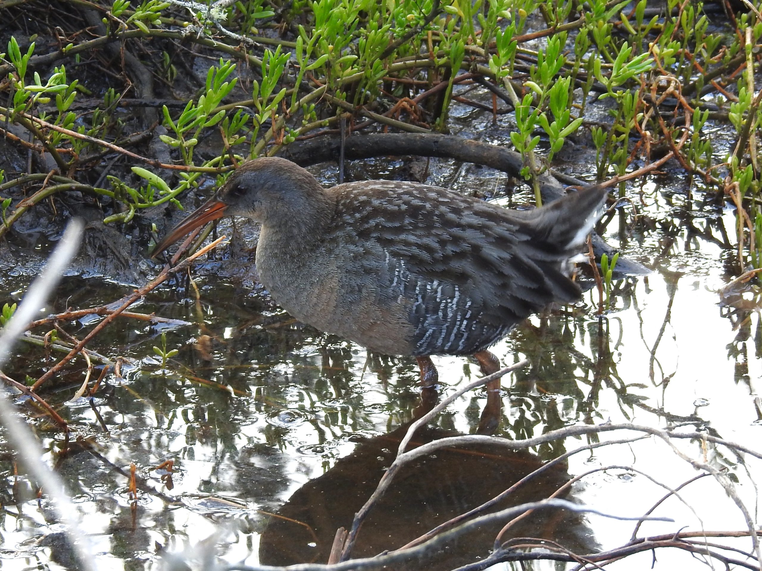 There are several access points to the Atlantic Ocean beach, and the one I picked at random had a covered picnic shelter on a dune looking over the water. I decided to take advantage of the shade to relax and look for gannets. I pulled out my new scope and checked out every bird flying up and down the shore. After perhaps a half hour, I spotted one that I thought might be a gannet. It even made a dive. But it was way out and disappeared before I’d convinced myself.