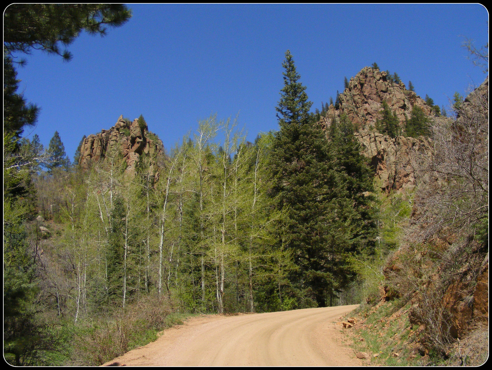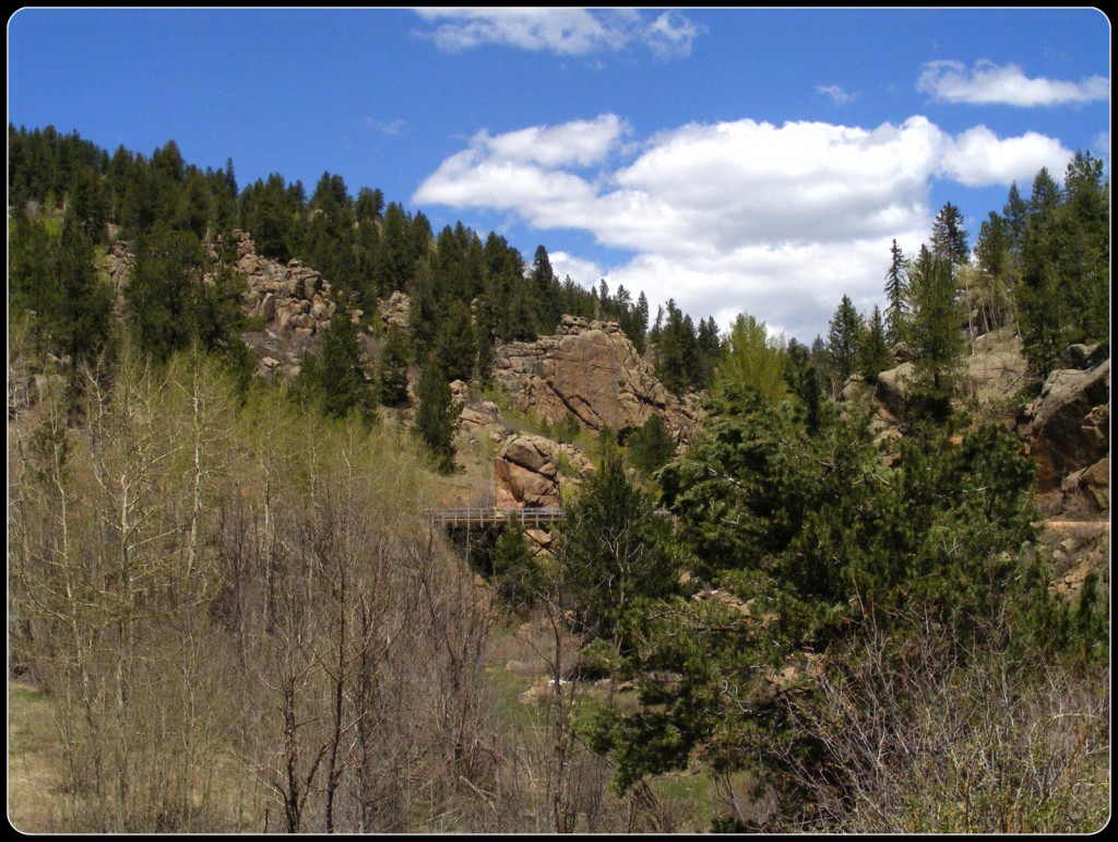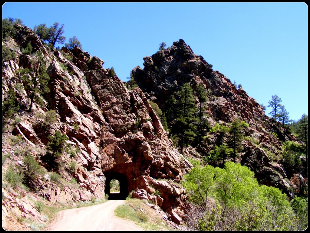 The road follows the bed of an old railroad that was used to transport gold out of the mountains to the north. It goes through two tunnels and over several bridges, the longest of which is an iron trestle from the original railroad. The road starts in the short-grass flats along the Arkansas River Valley, passes through several plant zones and ends in the town of Victor, right at the timberline. I kept thinking it couldn’t go much higher or get much prettier, but it kept doing both.