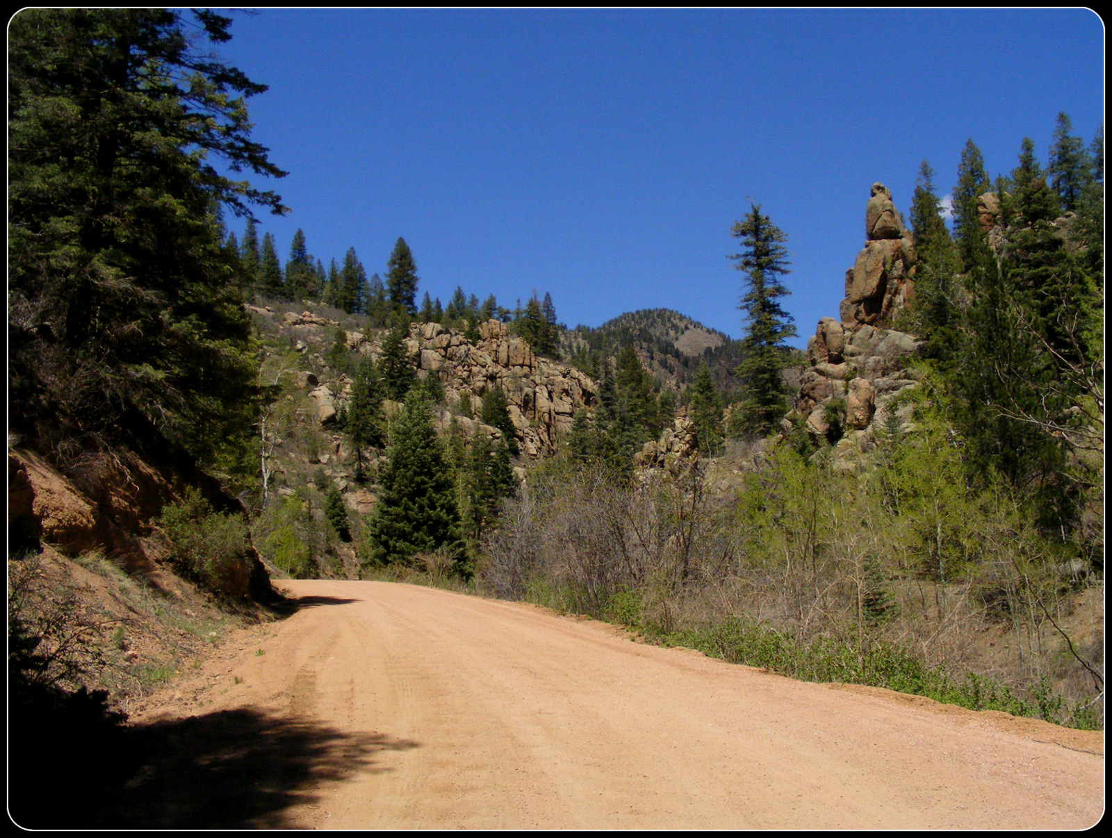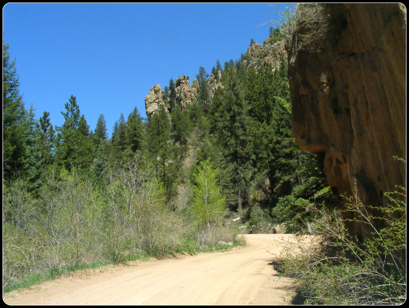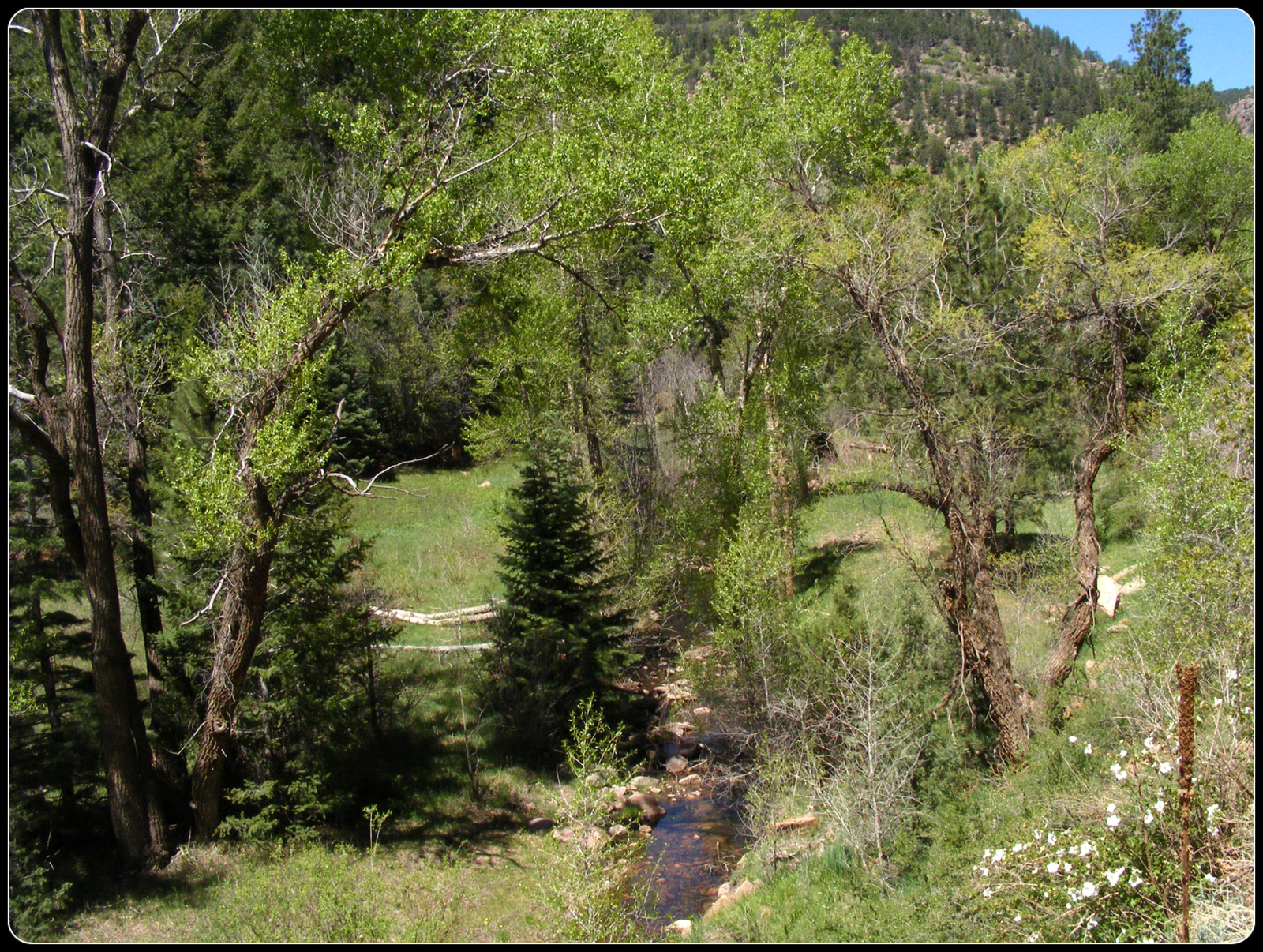 The road follows the bed of an old railroad that was used to transport gold out of the mountains to the north. It goes through two tunnels and over several bridges, the longest of which is an iron trestle from the original railroad. The road starts in the short-grass flats along the Arkansas River Valley, passes through several plant zones and ends in the town of Victor, right at the timberline. I kept thinking it couldn’t go much higher or get much prettier, but it kept doing both.