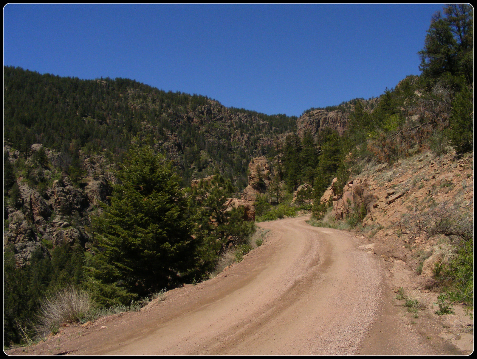 It’s 29.6 miles from Florence to Victor on Phantom Canyon Road. It took me four-and-a-half hours to make the trip. It wasn’t a road I wanted to speed on, but that’s not the reason it took me so long. I stopped and got out at least 25 times, and just stopped to admire the view another 30 or so times. During those 29.6 miles, I might have seen 15 cars. Traffic was so light that there were several times I just parked my car in the middle of the road and wandered around the area. This was never a problem.