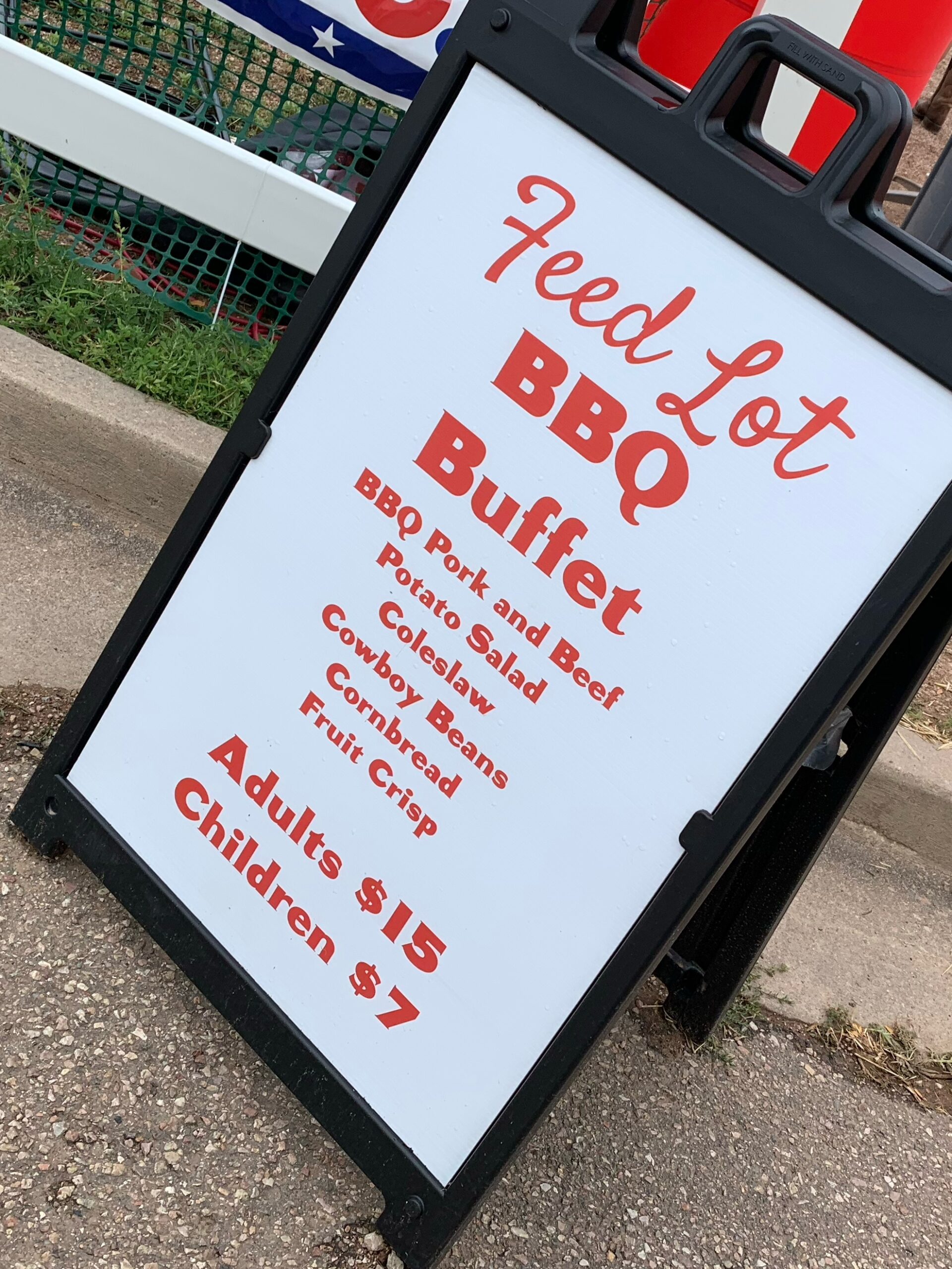 We arrived an hour and a half early to look at the vendors and exhibits, which was about an hour longer than we needed. With time to kill, we decided to experience all the rodeo had to offer and headed for the BBQ buffet tent. The food was much better than we expected, and we didn’t regret the choice at all.