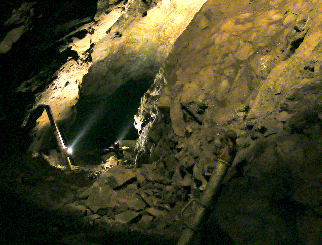 We were the final tour, so as we left the mine, they were shutting off the lights behind us. When the mine was in operation, this opening was used to pump water out of the lower levels.