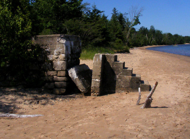The 1914 front range light deteriorated and has been removed. All that remains are a set of steps on the beach.