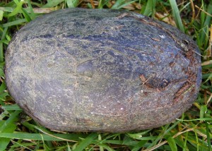 So I grabbed a leaf off a nearby vine and gave the shell a spit polish. As you can see, this made it a very happy turtle. I think.