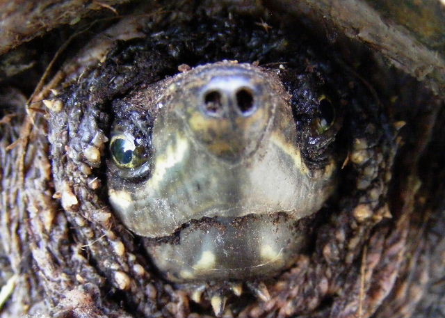 I make a point of that because the turtle was a Stinkpot, one of the musk turtles. Two of the things it’s known for are biting and emitting foul-smelling fluid from glands under its shell (hence the name). This turtle did neither, which was fine with me.