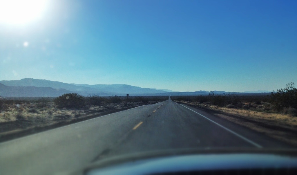 My rental car in California was a Ford Mustang convertible. After I left Joshua Tree National Park, I put the top down and headed northwest on Old Woman Springs Road.