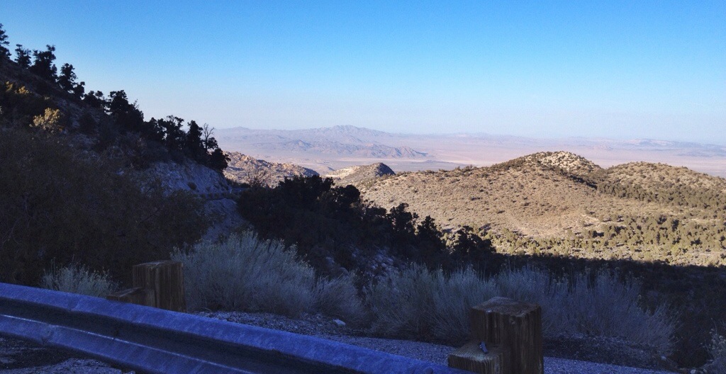 It was dusk when I started down the other side of the mountain. There was a steady stream of traffic coming up the other way.