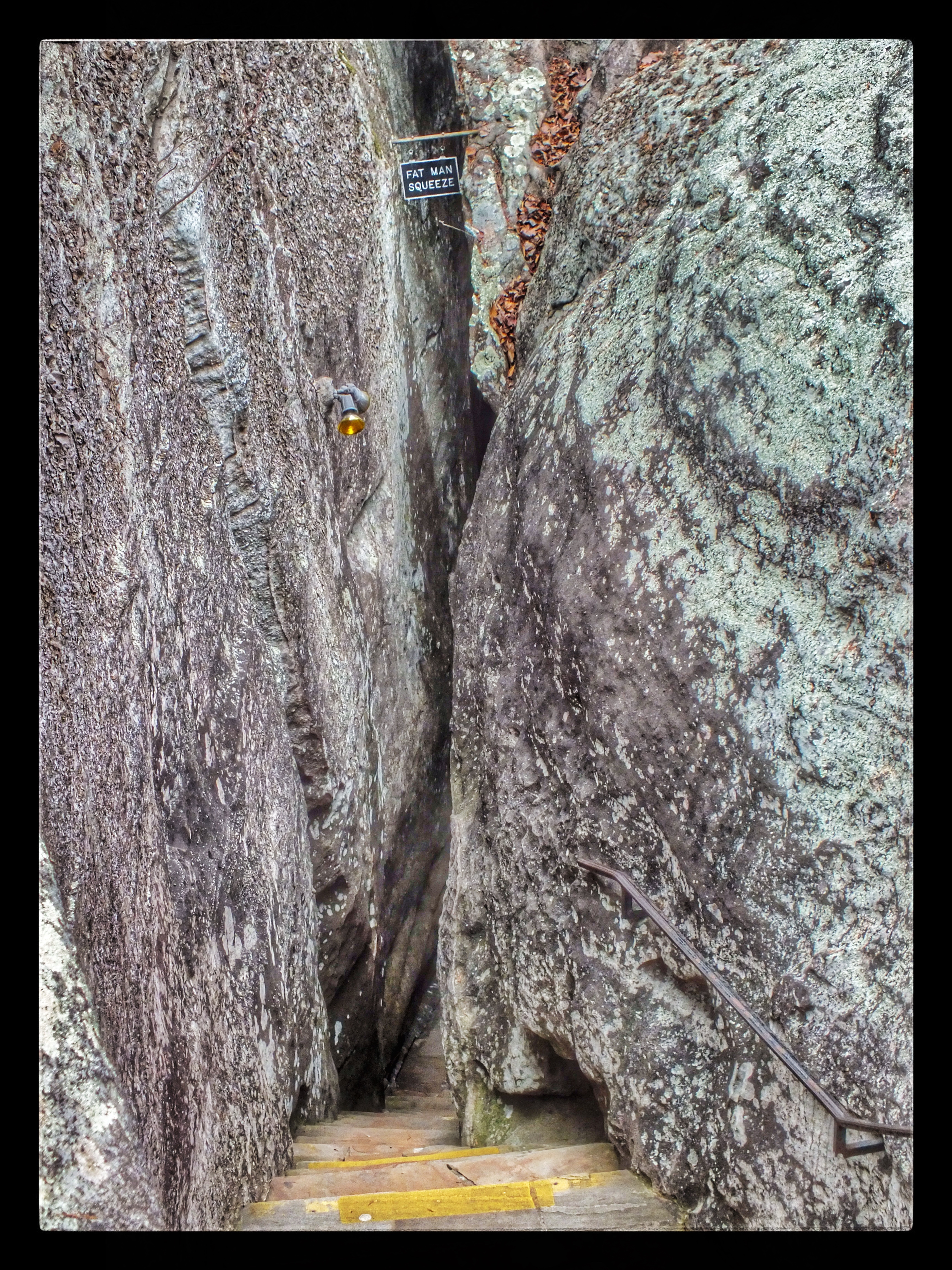 The first part of the trail winds through and over crevices in the mountain. (You’ll notice in these photos that I had some sort of annoy blotch on my camera lens that shows up as a white smear.)