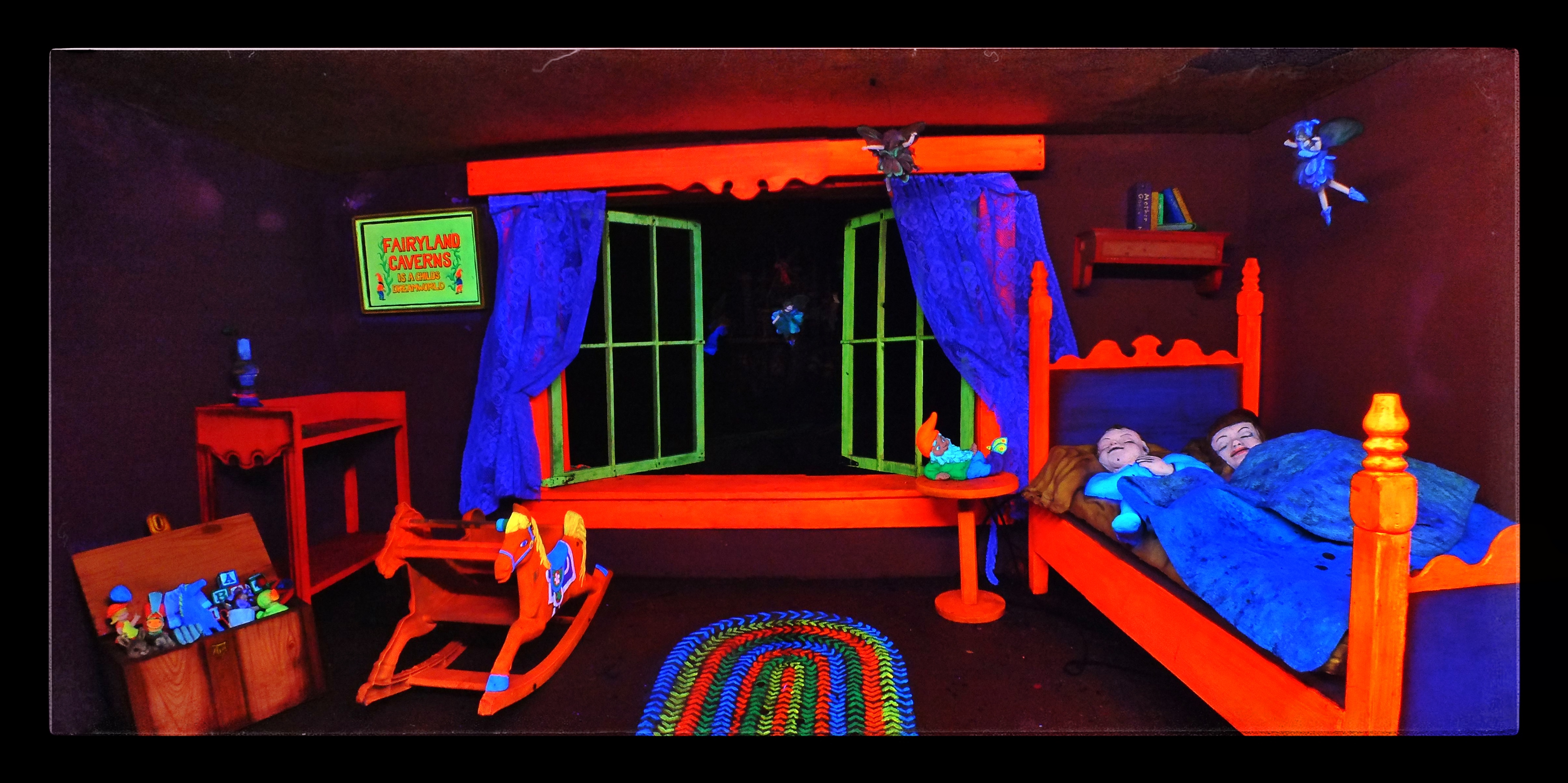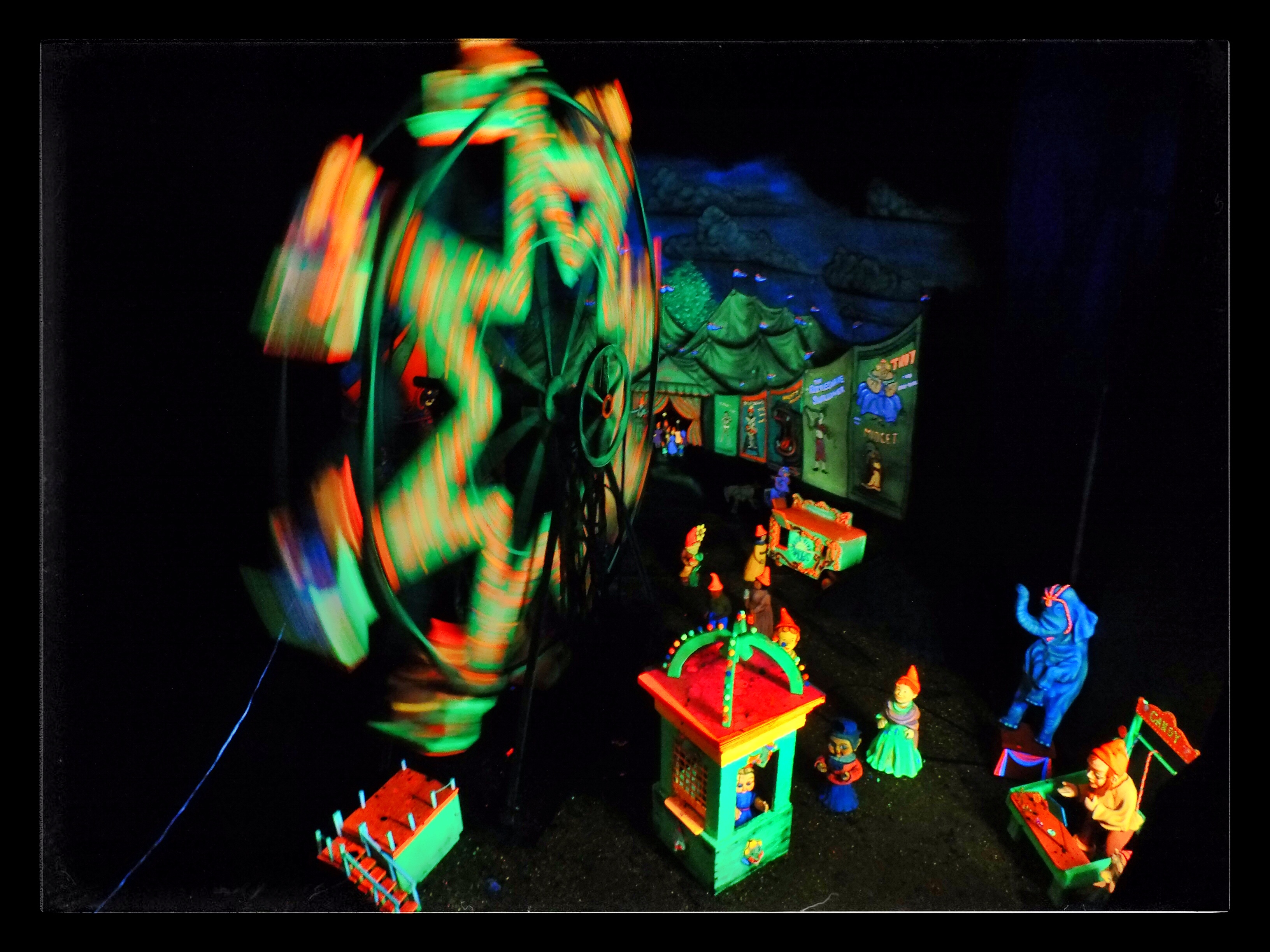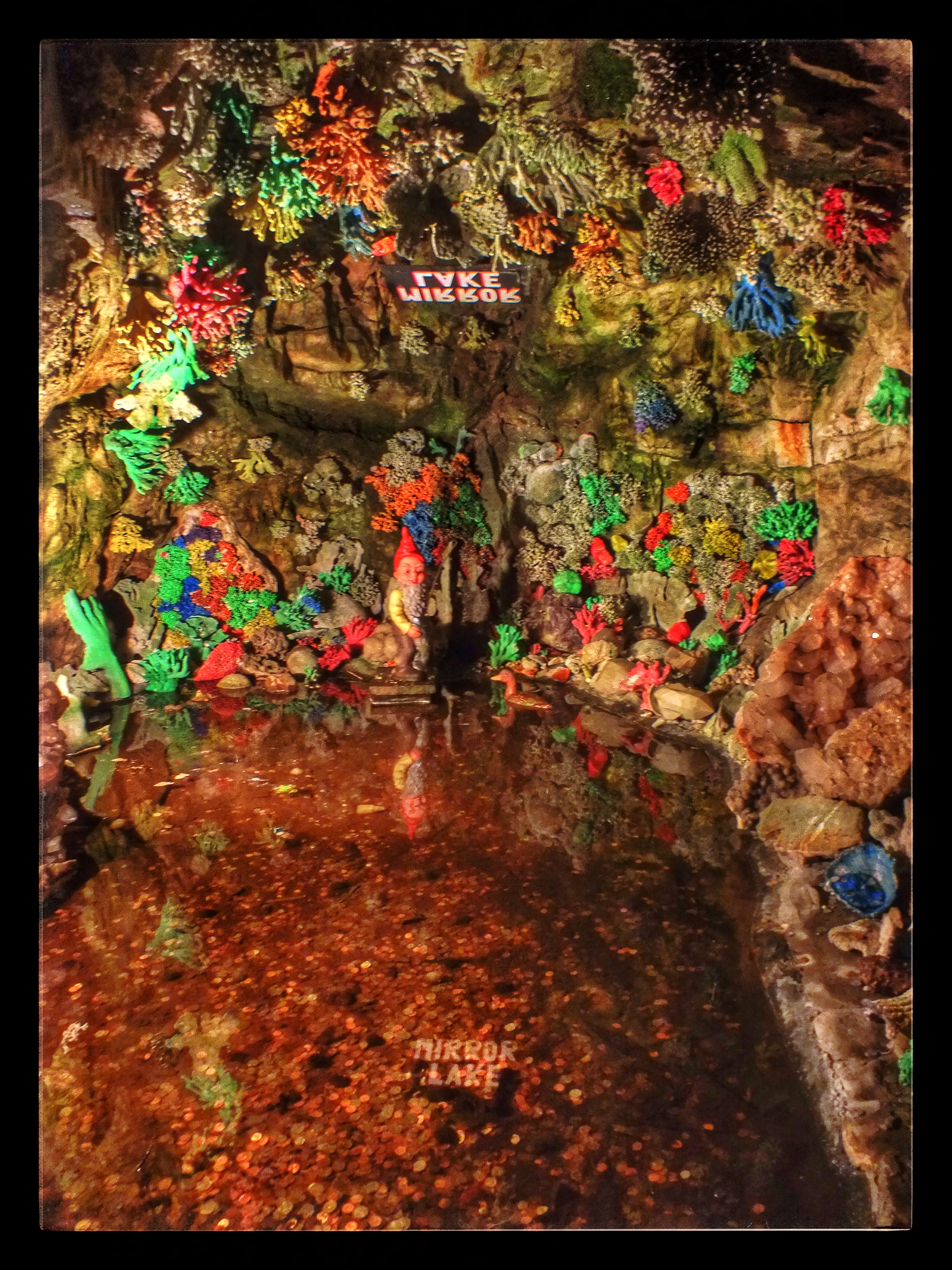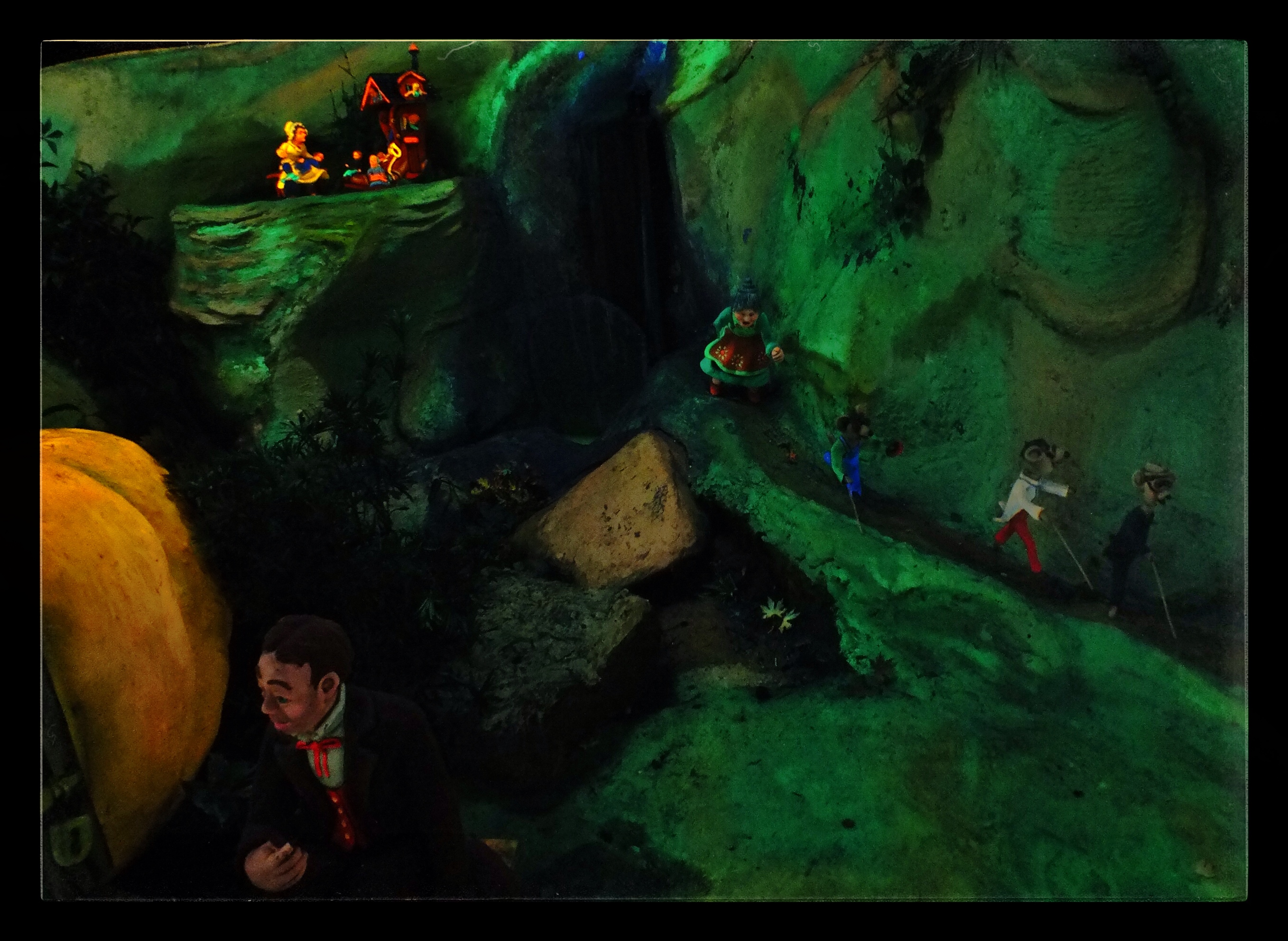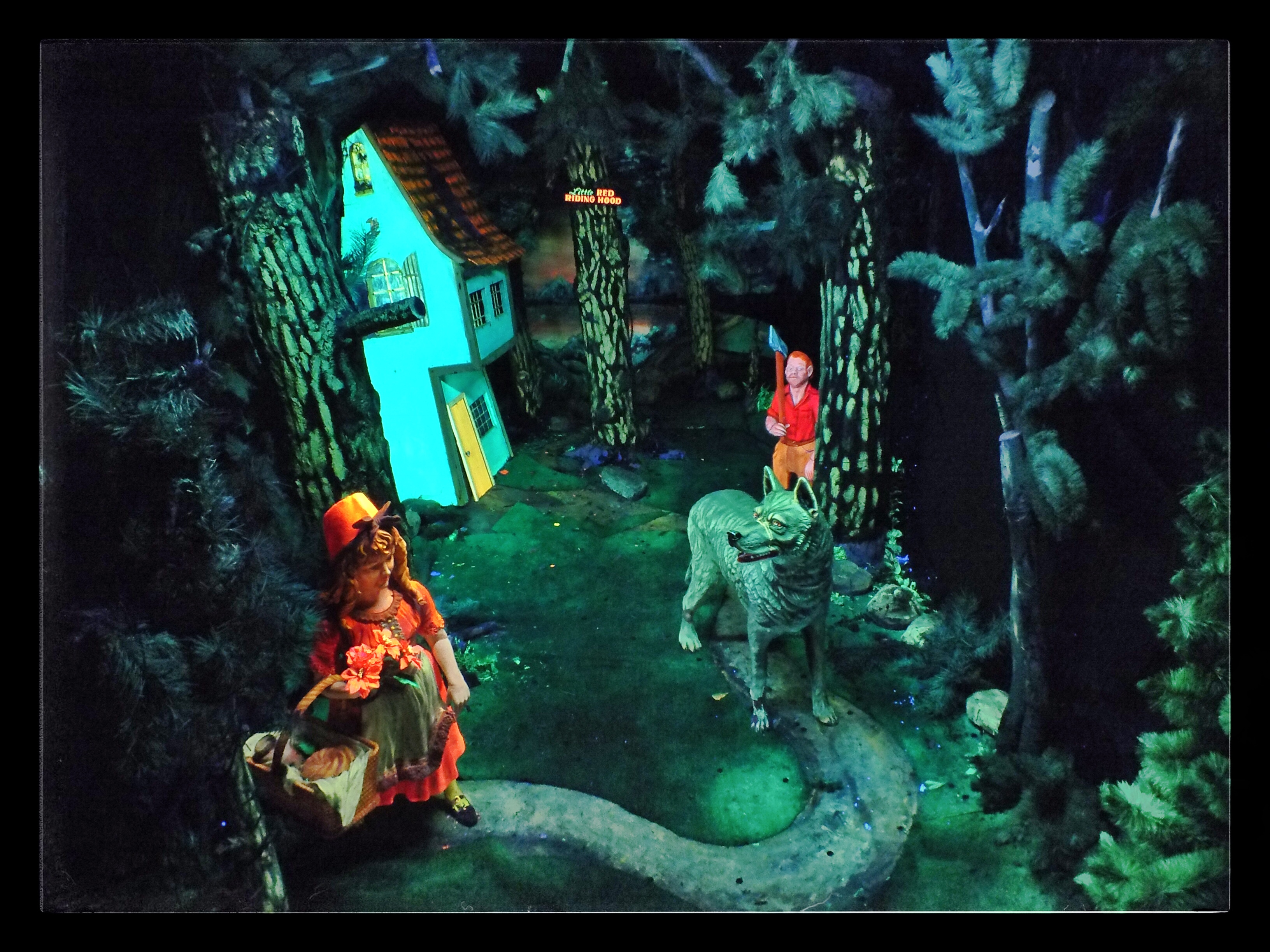 The tunnel goes on for perhaps a quarter mile. Alcoves off the tunnel contain scenes with gnomes or fairy tale characters lit with garish black light.