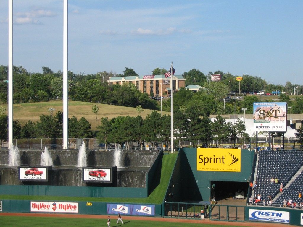 I loved the park, with the view beyond the outside walls of the interstate (and my motel) and the hills and the headquarters of the Fellowship of Christian Athletes. The scoreboard kept things lively and the water fountains are a great touch. There was stuff going on between almost every half inning. I was back in my hotel room 15 minutes after the final out.