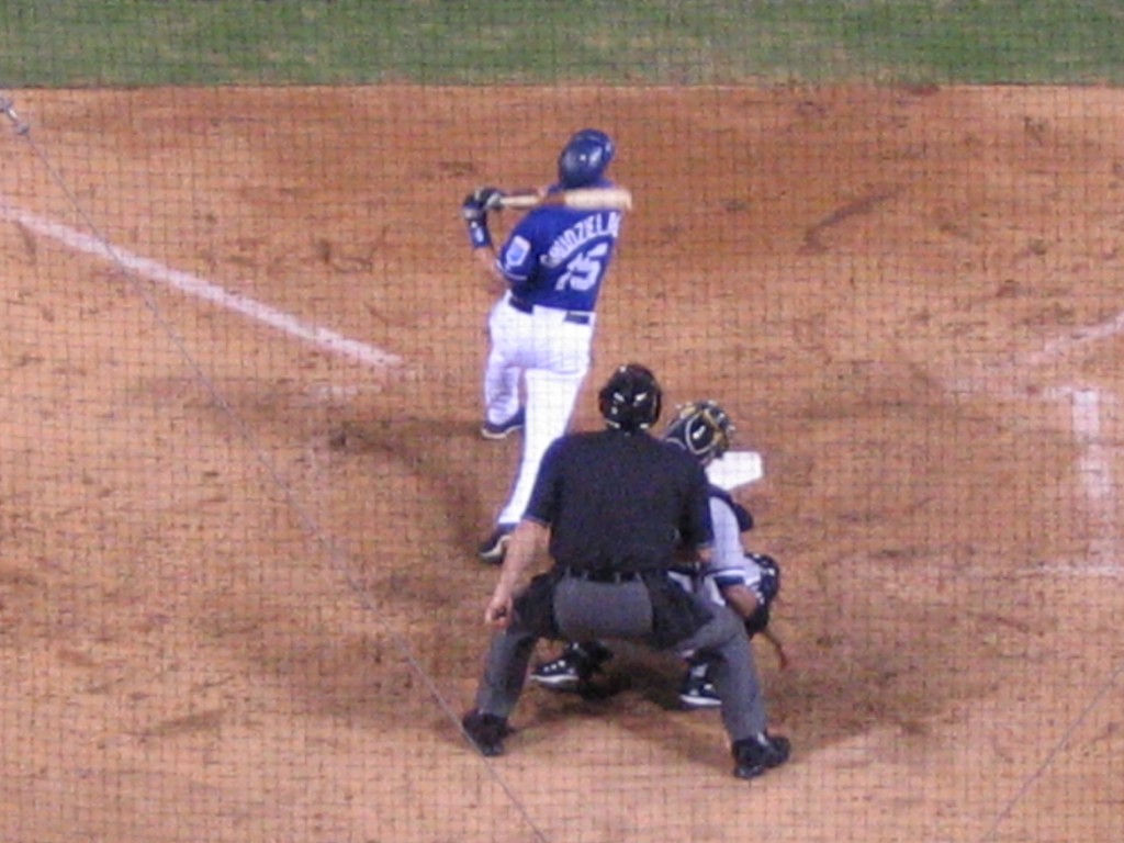There were just over 11,000 people at the game. The upper deck was empty except for the few sections right around where I was sitting. On my right was a kid who looked to be around 20. He was inoffensive enough, but for the entire game he kept up a steady stream of banter with his companion. For three hours, everything he said was a cliche, which became very annoying.