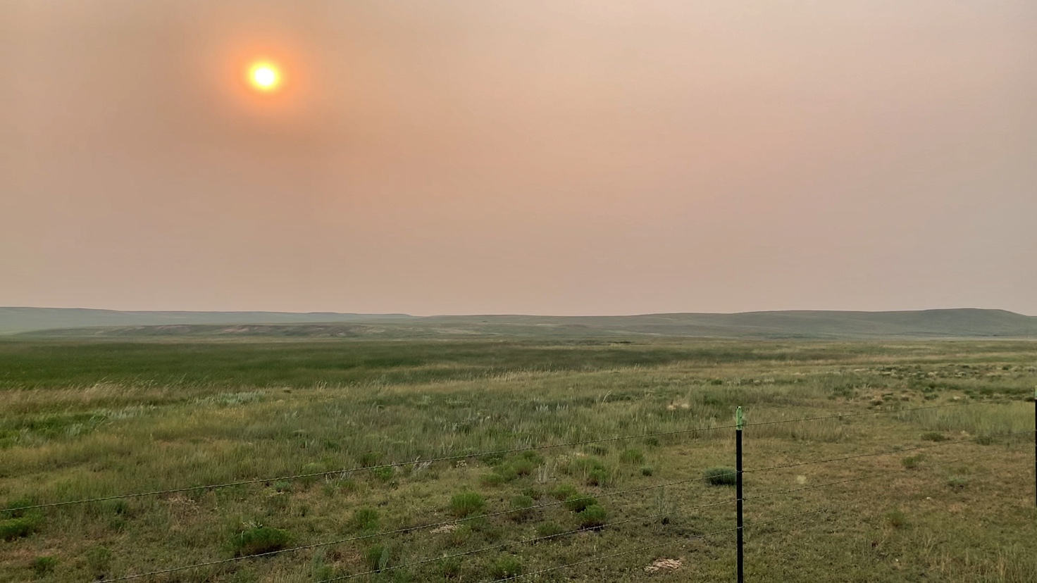 When I got to the spot where the Baird’s Sparrows have been seen, the sun was an orange spot in a smoky sky.