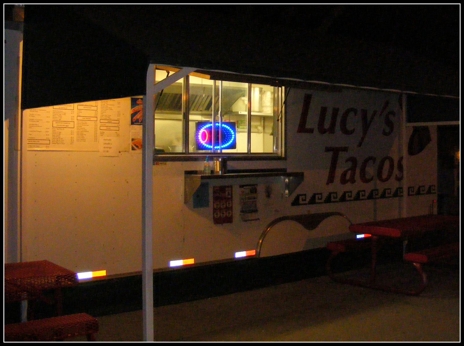 But then I saw the turn for the La Junta business district and, on the spur of the moment, pulled off. The town was closed. There were no lights and no people anywhere. I found Lucy’s Tacos, and it looked closed too. But there was a lit “open” sign in the window.