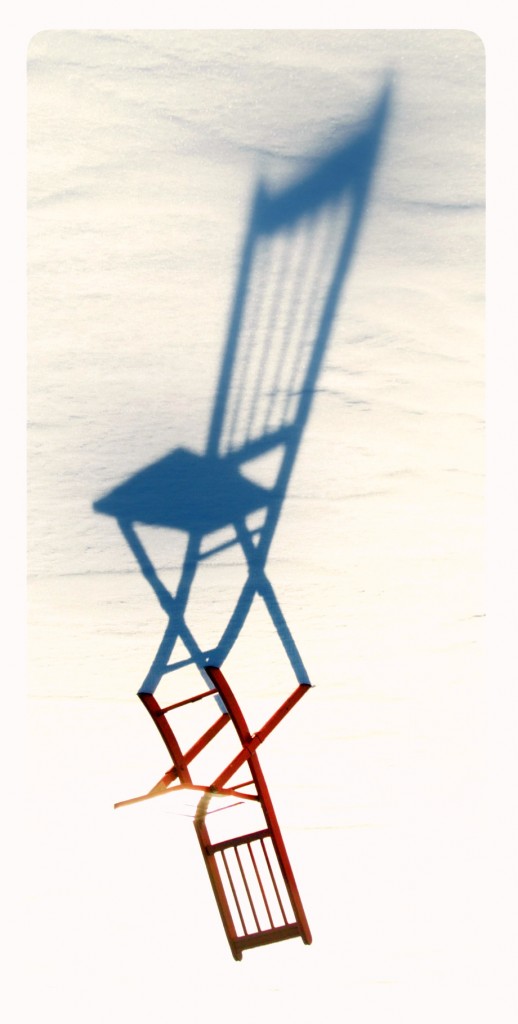 Late one afternoon, I noticed how crisp the shadows were on the snow. I waded through the drifts to a nearby schoolyard, placed the chair in an undisturbed spot and climbed a snow pile to get the perspective I wanted.