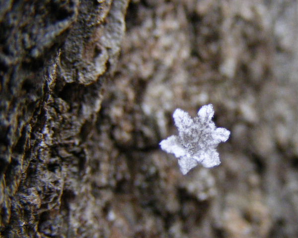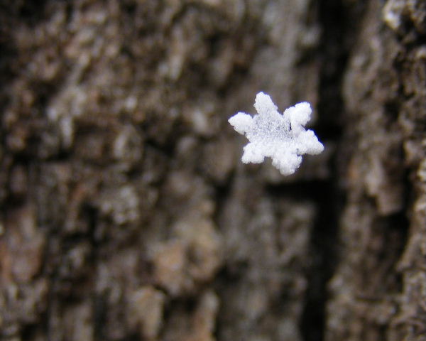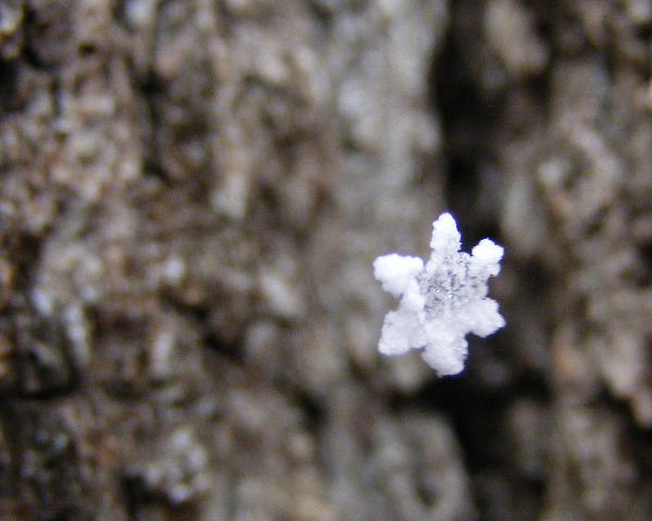 But wait … A flower wouldn’t grow there. And besides, it was late November and snowing at the time. I took a closer look. I was amazed to discover it was a perfect snowflake caught on a nearly invisible strand of spider’s web. It drifted about in the wind as I spent several minutes taking close up photos. Here are my best ones.