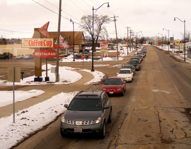 Mendota was definitely the weather high point of the day. As we traveled further east, the sky got decidedly gray and so did everything else. I took this picture somewhere west of Aurora. This is exactly how it came out of my camera (except for a bit of cropping).
