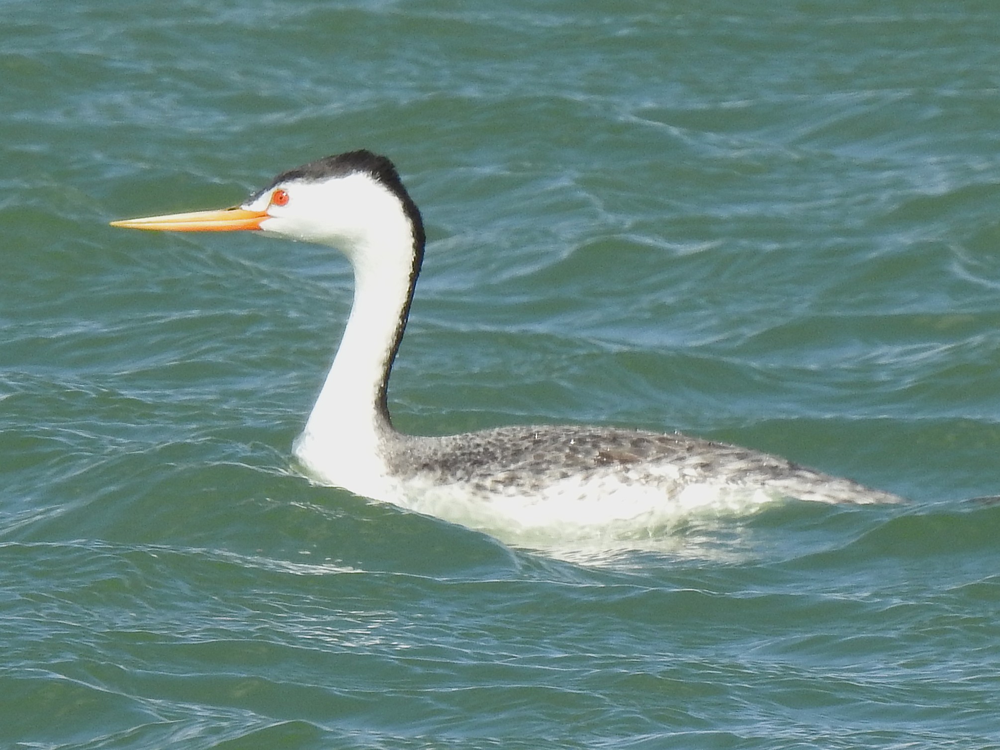 One last note — on the sixth, the day we confirmed the i.d. of the grebe, there were three loons in the area — Common, Pacific, and Red-throated — and five grebes — Clark’s, Horned, Eared, Red-necked, and Pied-billed. There aren’t too many people who have seen all of those in one spot in one day.