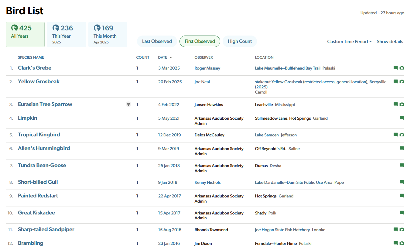 Nobody had seen a Clark’s in Arkansas before, so my name will go down in history as the the finder of the first one in the state — the 425th species all time.