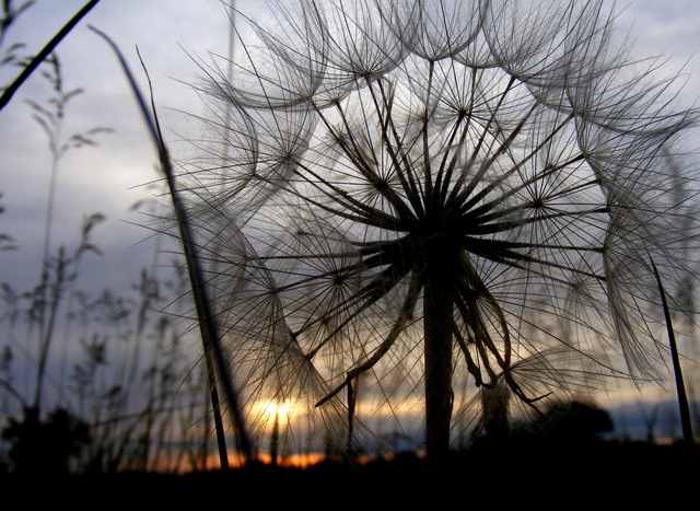 I got to wondering what would happen if I walked off the path into the prairie a little ways, laid down in the tall grass and took photos of the sunset with my camera set on super macro. I got several nice shots, but this was my favorite.