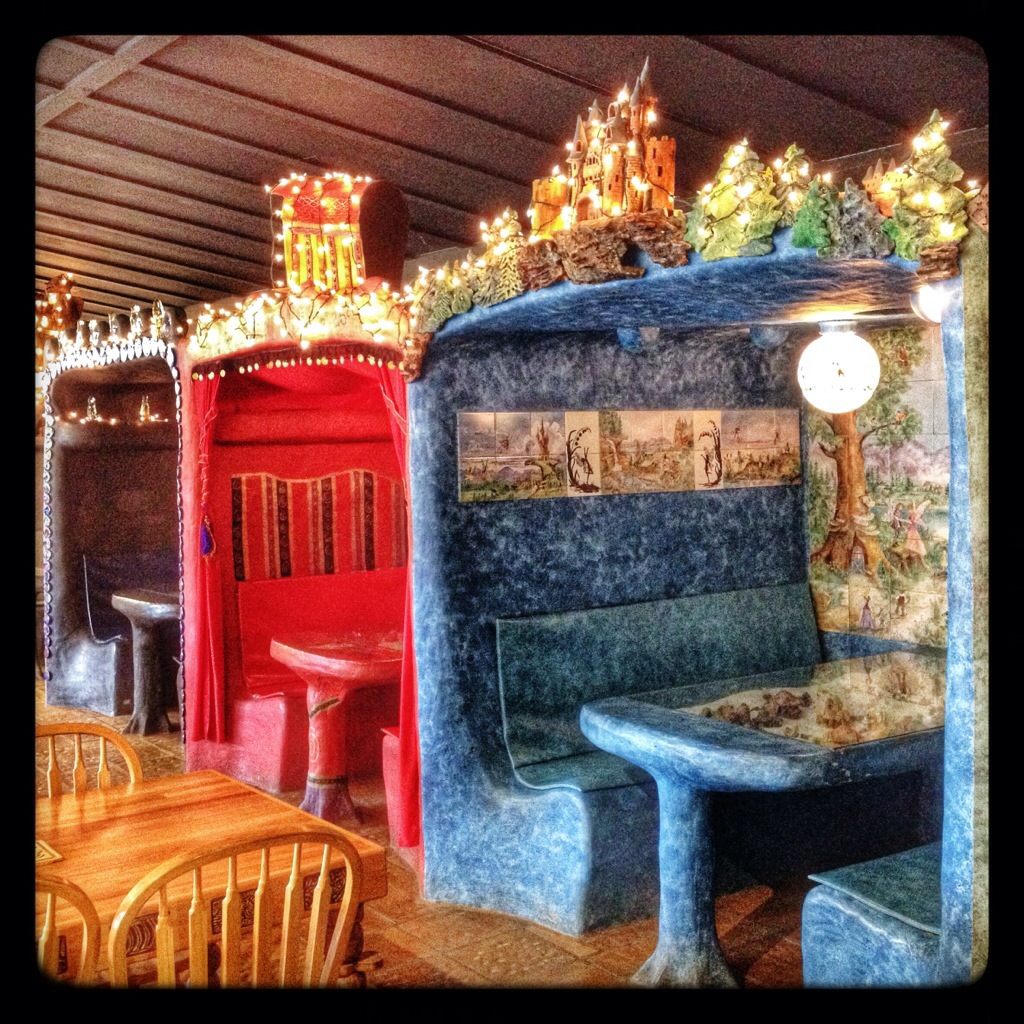 Even the booths in the cafeteria were artistic. The food … not so much.