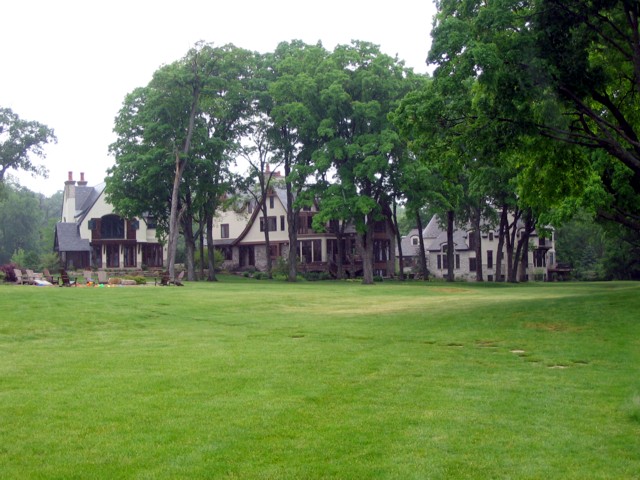 The Wrigleys, of chewing gum and Chicago Cubs fame, own a large swath of the north shore with several houses and two big boathouses. Here’s their property: