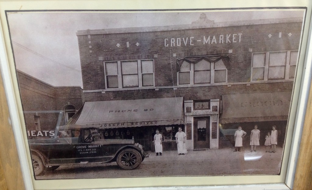 Two days before Thanksgiving, I was following the historic walking tour of Fox River Grove when I stopped to take a photo of Grove Market. It wasn’t on the tour, but it looked old and interesting.