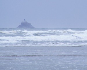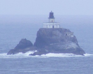 The Tillamook Rock Lighthouse perches on a rock a little more than a mile off Tillamook Head. The light is 133 feet above the sea, 62 feet of that height consisting of the tower. It was built in 1881 and continued in service until 1957. It was then purchased by a private company who sells spaces to store the ashes of loved ones (who, I hope, have died).