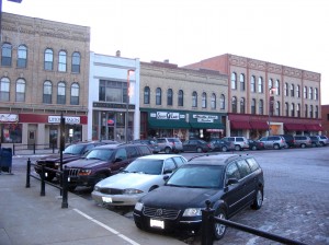 Scene where the police are chasing Phil just after he steals the red pickup and the groundhog. The building at the end of the street now houses the Starbucks where we began the day.